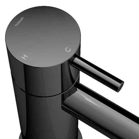 Hotbath Cobber lage wastafelmengkraan met gebogen uitloop zonder waste zwart chroom SHOWROOMMODEL