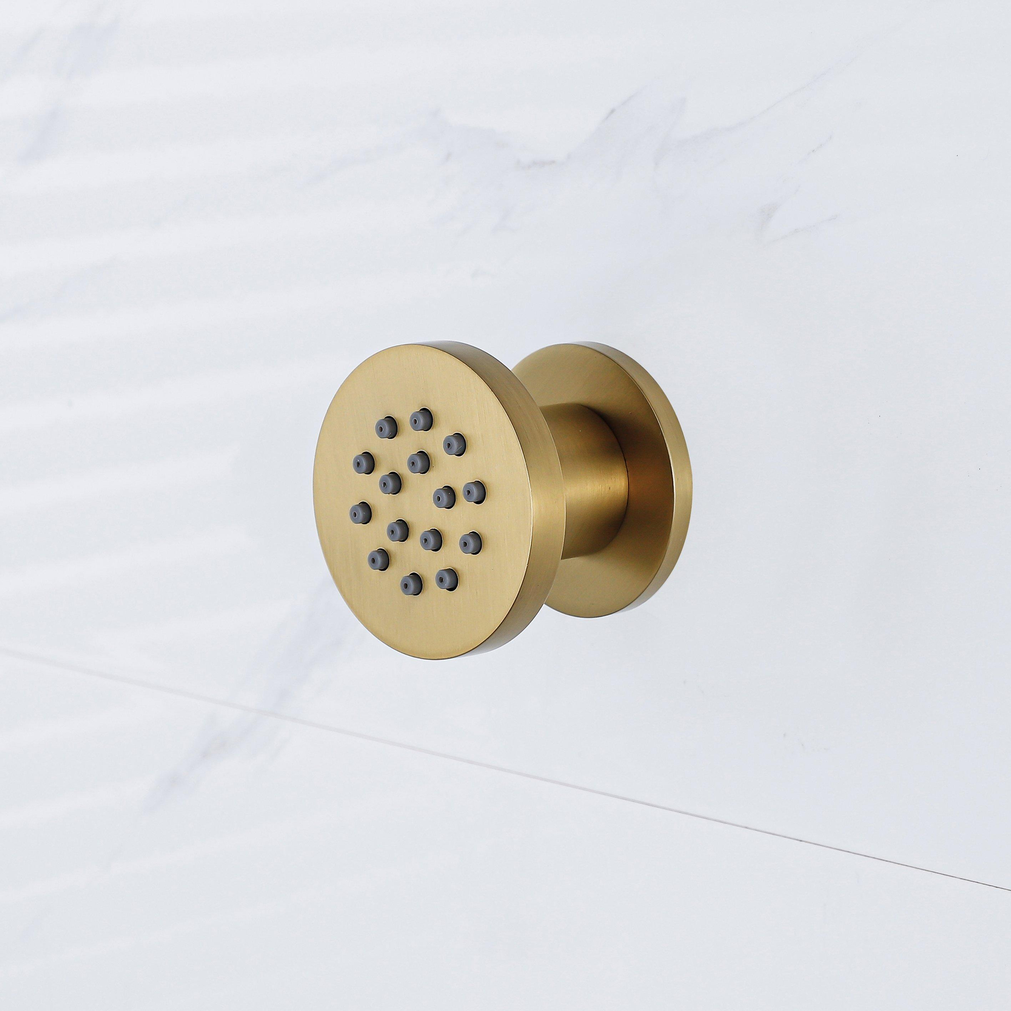 De **Fortifura Calvi zijdouche** in geborsteld messing (goud) is een elegante toevoeging aan elke badkamer. Met een diameter van 5 cm en een ronde vorm biedt deze zijdouche een stijlvolle, luxe uitstraling. De PVD-coating in geborsteld messing zorgt voor een duurzame, krasbestendige afwerking met een warme gouden gloed die perfect past bij een klassieke of moderne badkamerstijl.De gerichte waterstraal van de zijdouche zorgt voor een verfrissende en ontspannende douche-ervaring. Dankzij de hoogwaardige PVD-behandeling is het materiaal niet alleen prachtig, maar ook bestand tegen slijtage en corrosie. De gouden afwerking voegt een vleugje luxe toe aan jouw badkamer, zonder in te boeten op functionaliteit.