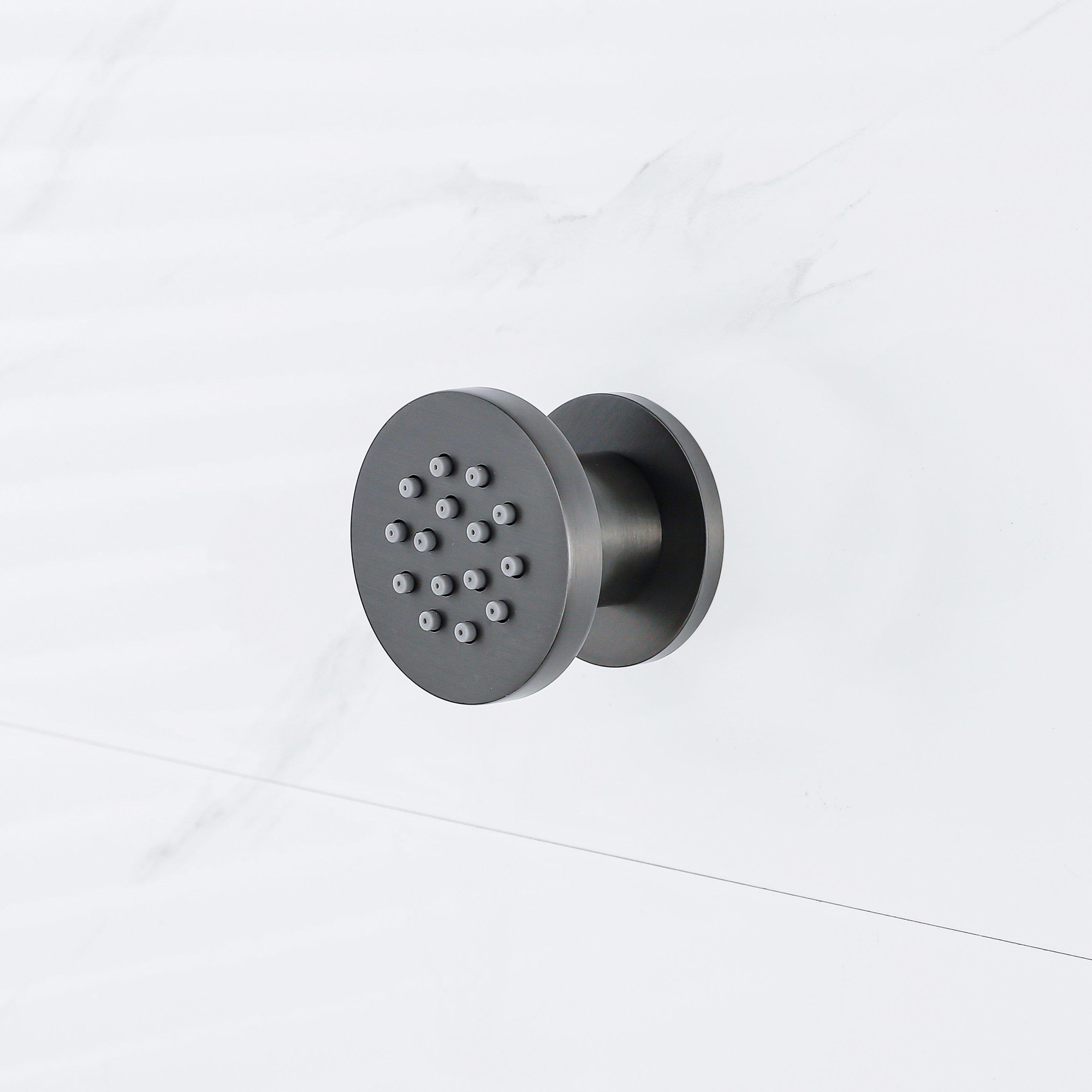 De **Fortifura Calvi zijdouche** in geborsteld gunmetal combineert een modern design met een stoere, industriële uitstraling. Met een diameter van 5 cm en een ronde vorm past deze zijdouche perfect in een eigentijdse badkamer. De PVD-coating in geborsteld gunmetal zorgt voor een duurzame, krasbestendige afwerking en geeft een uniek, donker metallic effect dat zowel stijlvol als robuust oogt.De gerichte waterstraal van deze zijdouche zorgt voor een verfrissende en comfortabele douche-ervaring. Het hoogwaardige materiaal en de PVD-behandeling maken het product bestand tegen slijtage en corrosie, wat zorgt voor een lange levensduur. De gunmetal afwerking voegt een moderne en krachtige uitstraling toe aan jouw badkamer.
