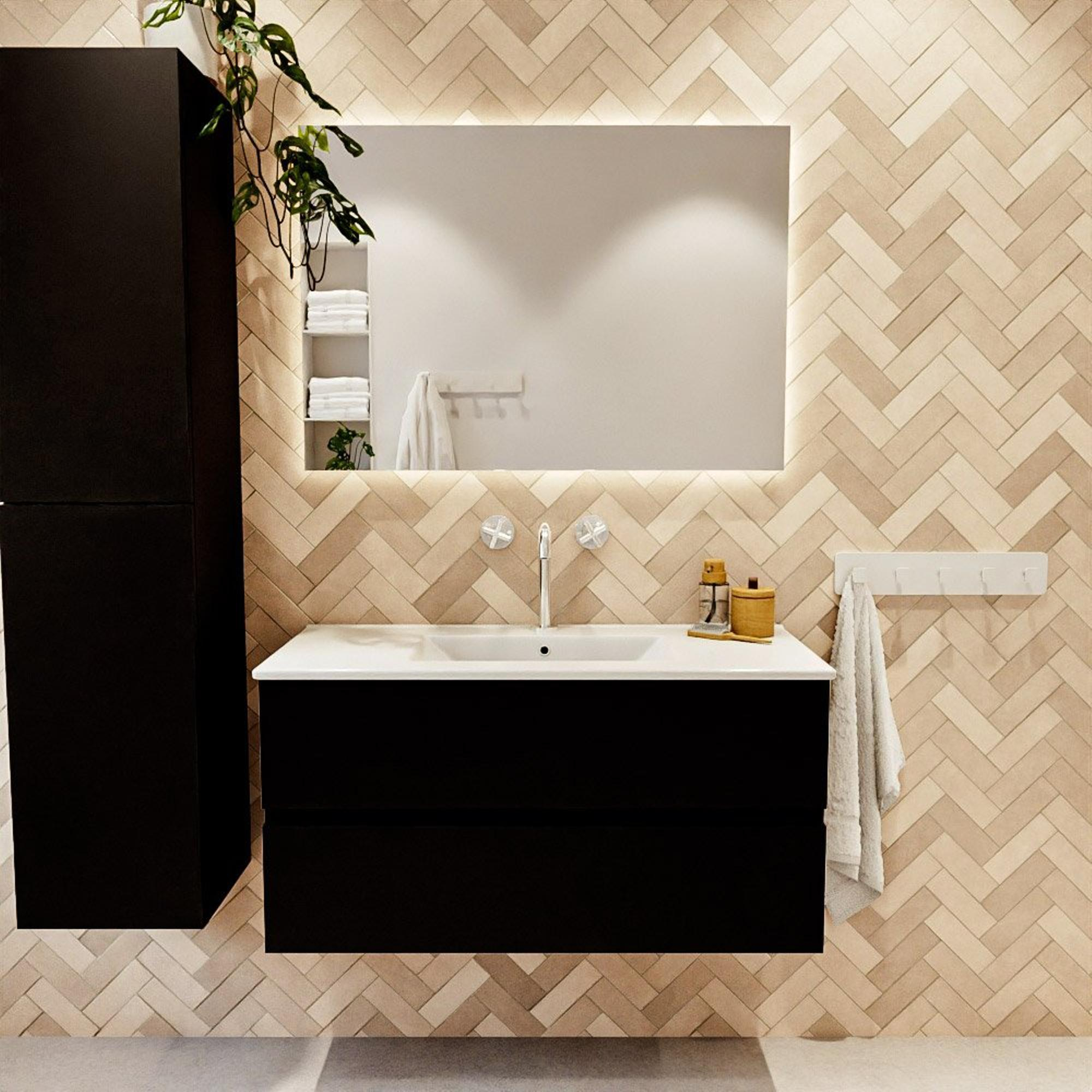 MONDIAZ VICA 100cm badmeubel onderkast Urban 2 lades. Wastafel DENIA midden 1 kraangat, kleur Glanzend Wit.