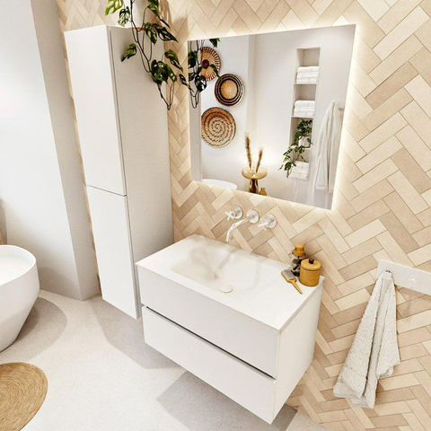 MONDIAZ VICA 80cm badmeubel onderkast Talc 2 lades. Wastafel CLOUD midden zonder kraangat, kleur Talc.