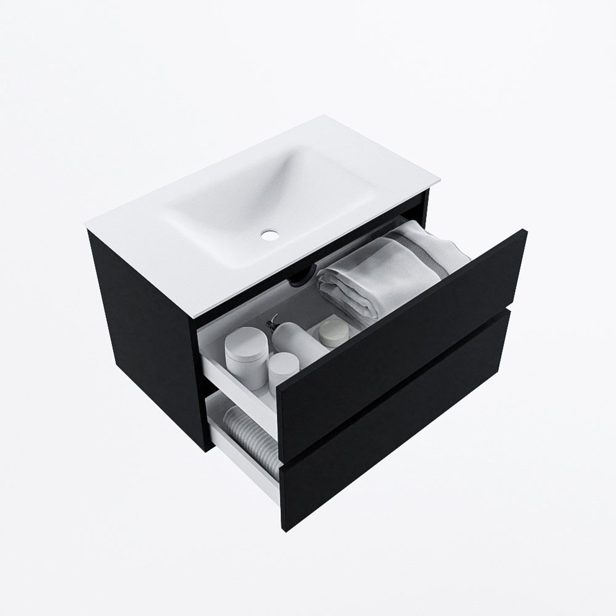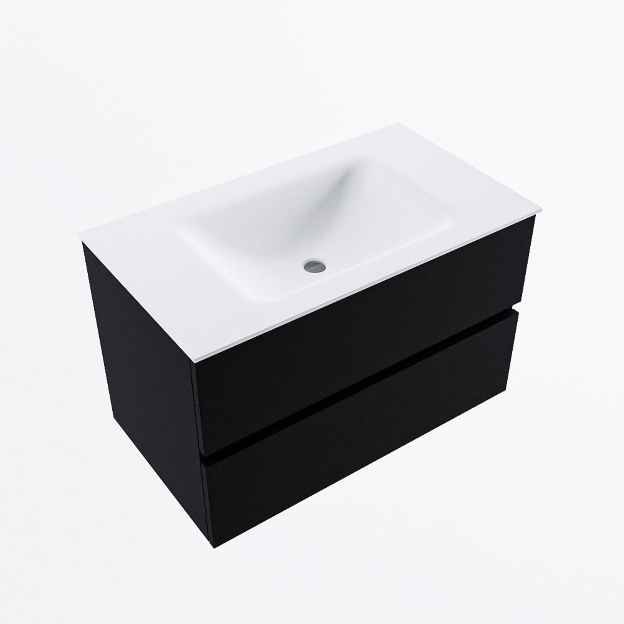 MONDIAZ VICA 80cm badmeubel onderkast Urban 2 lades. Wastafel CLOUD midden zonder kraangat, kleur Talc.