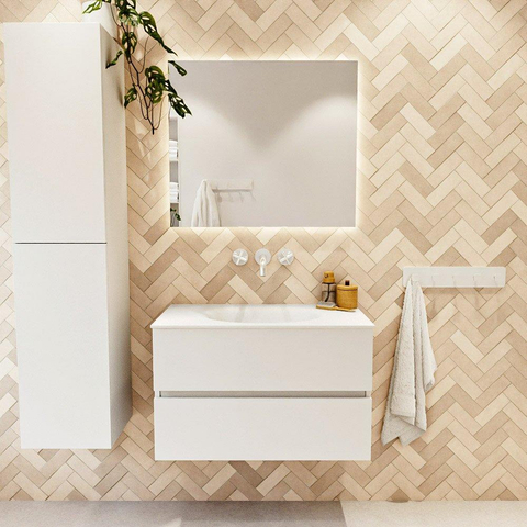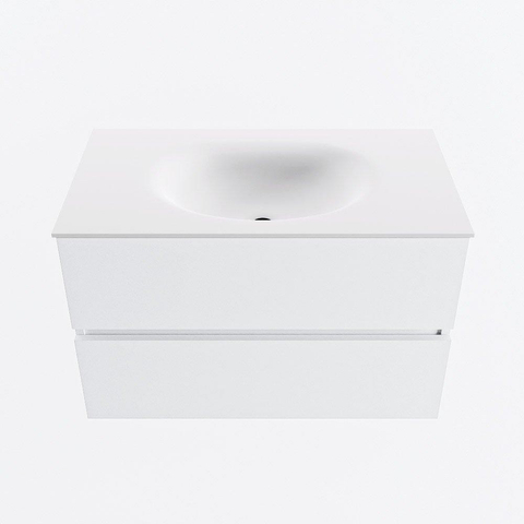 MONDIAZ VICA 80cm badmeubel onderkast Talc 2 lades. Wastafel MOON midden zonder kraangat, kleur Talc.