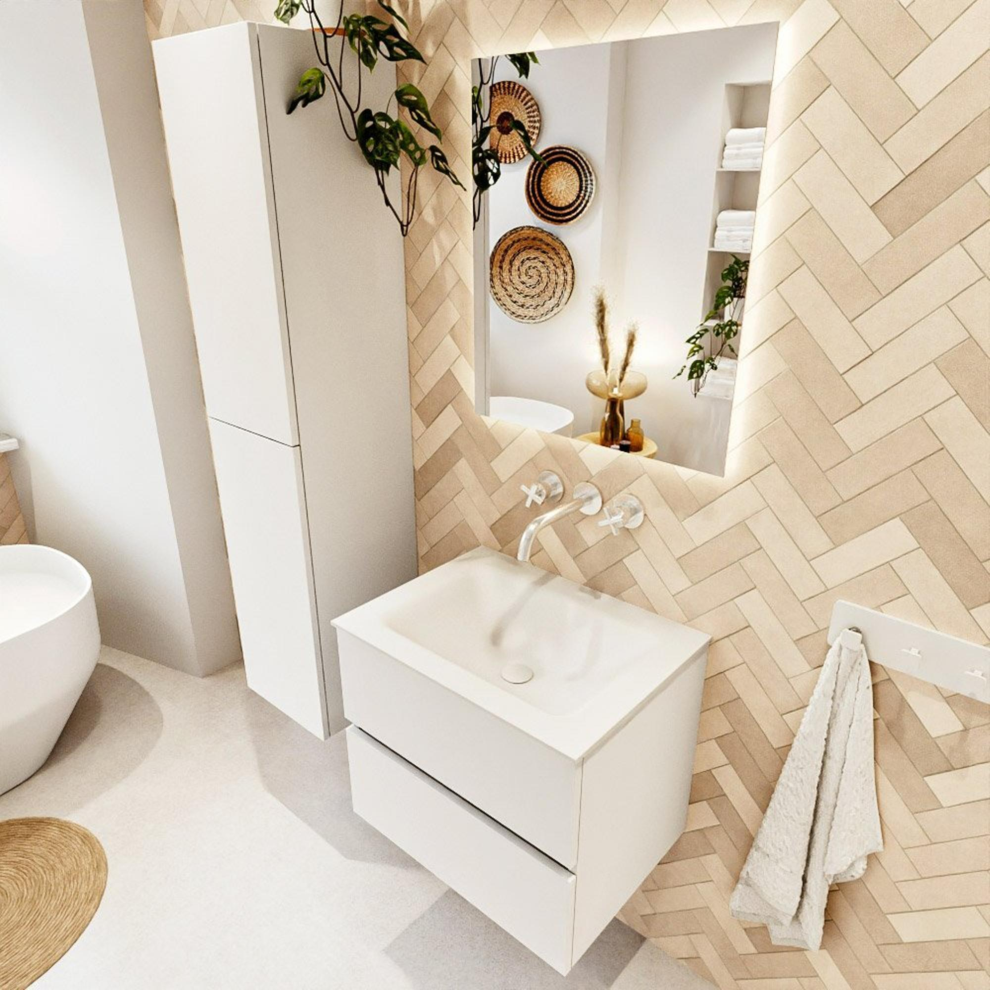MONDIAZ VICA 60cm badmeubel onderkast Talc 2 lades. Wastafel CLOUD midden zonder kraangat, kleur Talc.