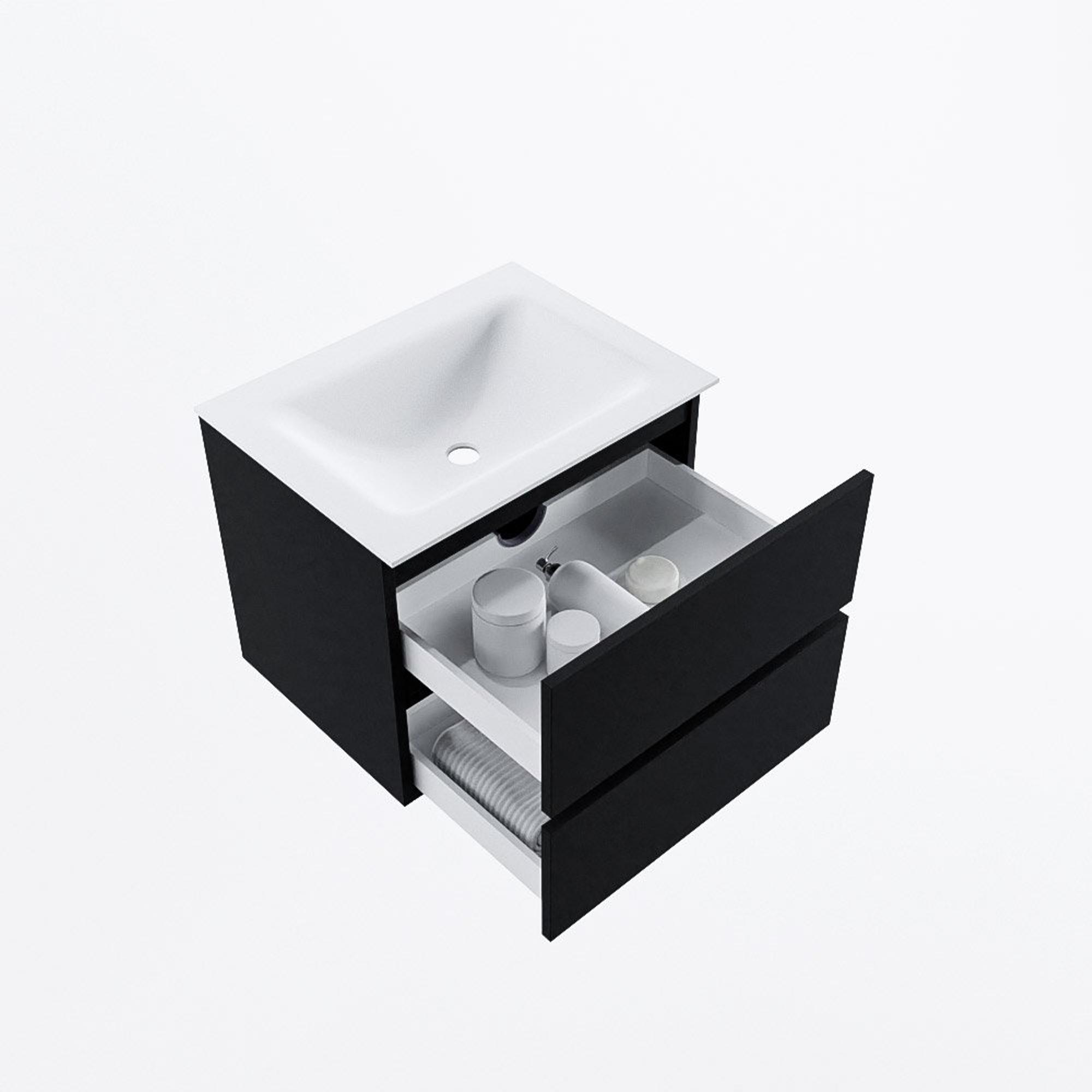 Naast zijn luxueuze uitstraling is dit badmeubel ook uiterst functioneel. De lades zijn voorzien van soft-close technologie, waardoor ze geruisloos sluiten en je spullen beschermd blijven. De praktische indeling van de lades zorgt ervoor dat je al je spullen georganiseerd kunt opbergen, terwijl de wastafel met één kraangat zorgt voor een eenvoudige en efficiënte gebruikservaring.