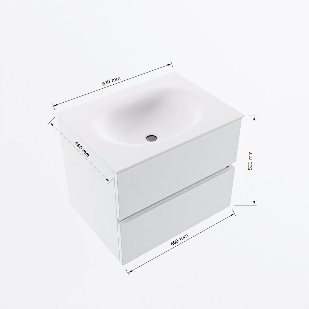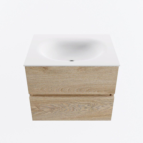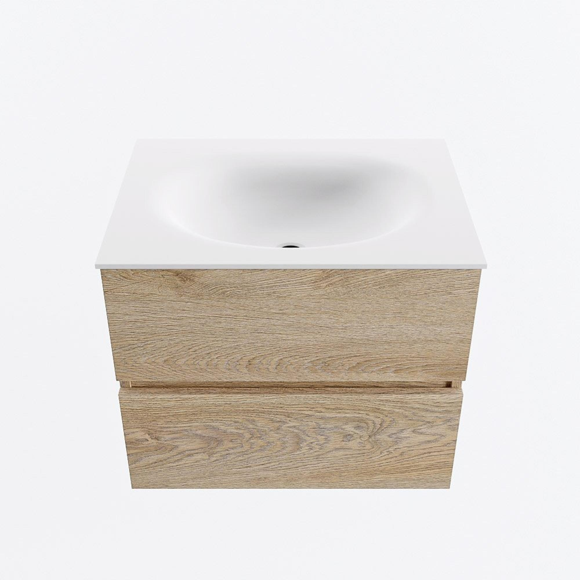 MONDIAZ VICA 60cm badmeubel onderkast Washed Oak 2 lades. Wastafel MOON midden 1 kraangat, kleur Talc.