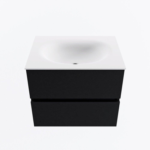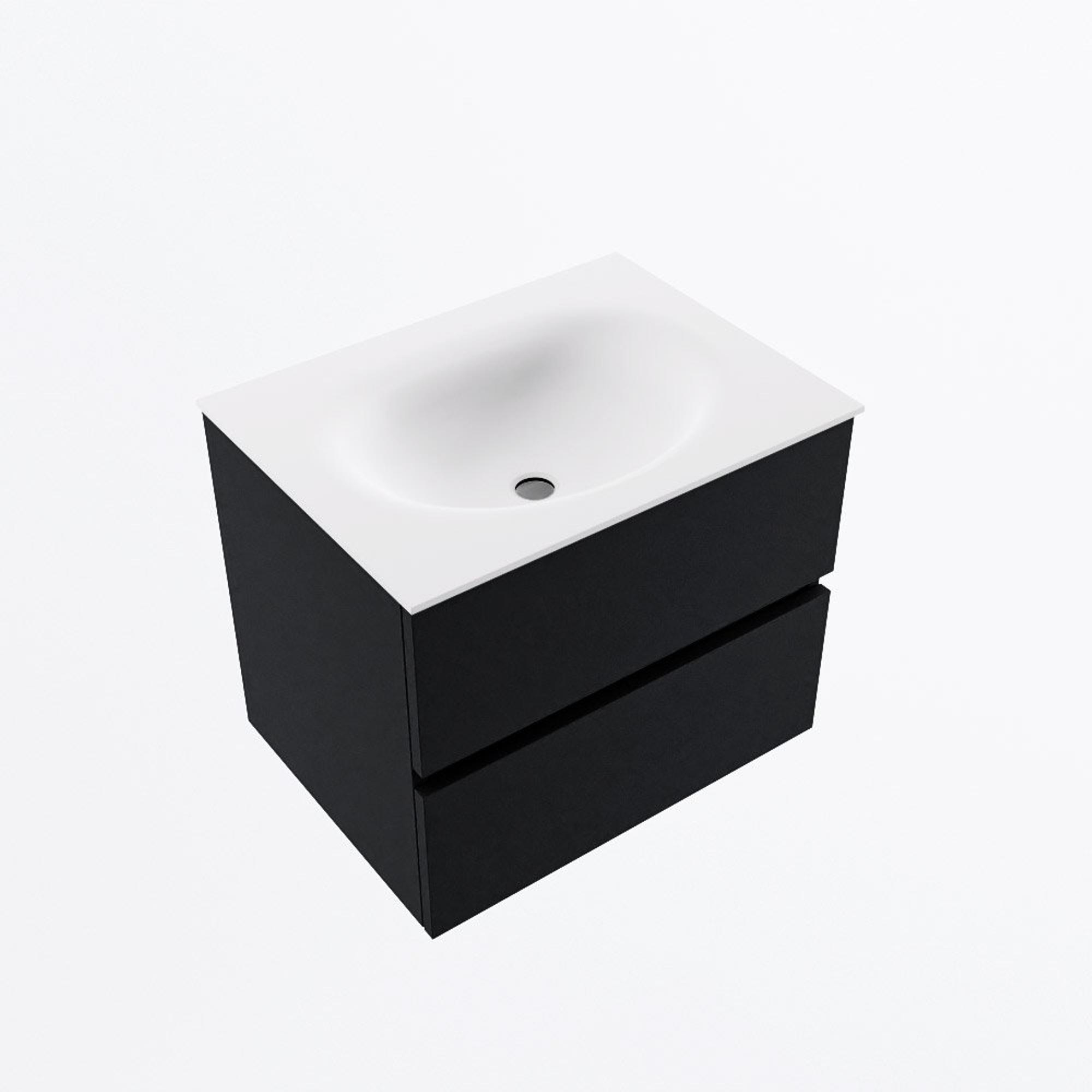 MONDIAZ VICA 60cm badmeubel onderkast Urban 2 lades. Wastafel MOON midden 1 kraangat, kleur Talc.