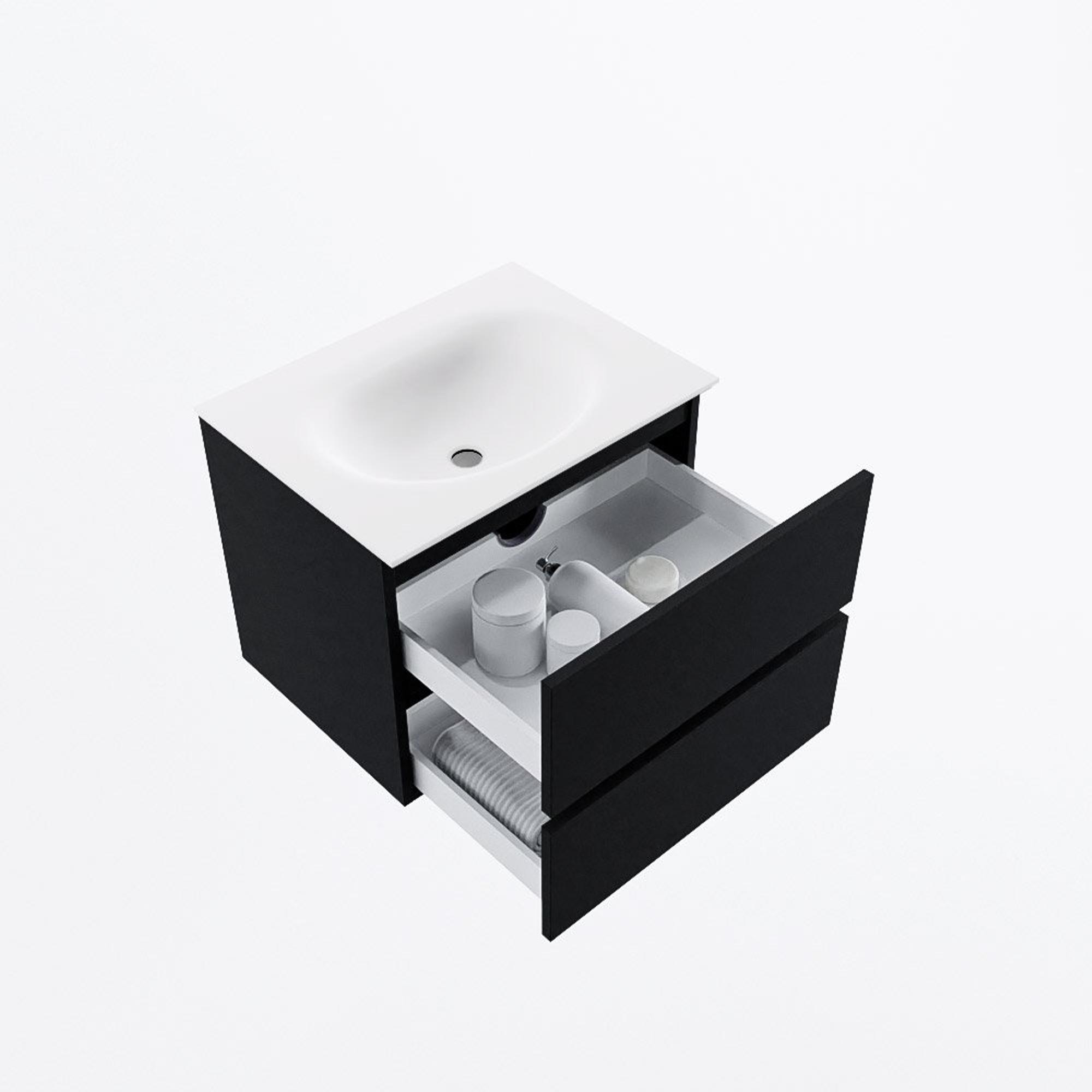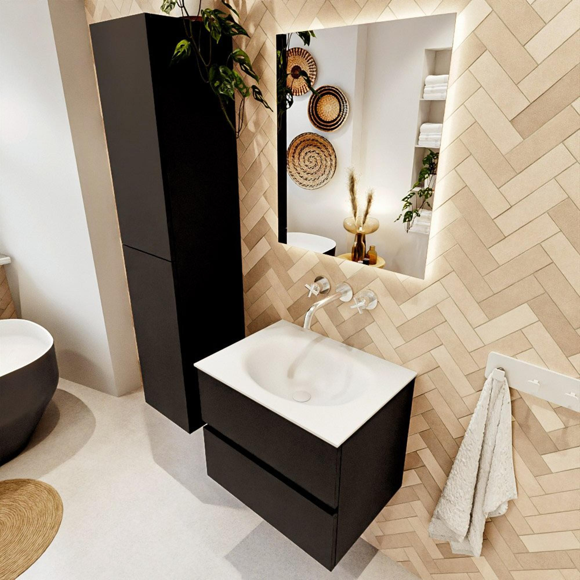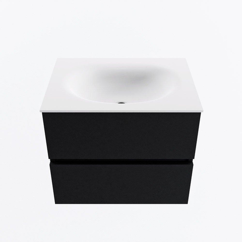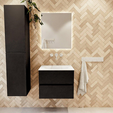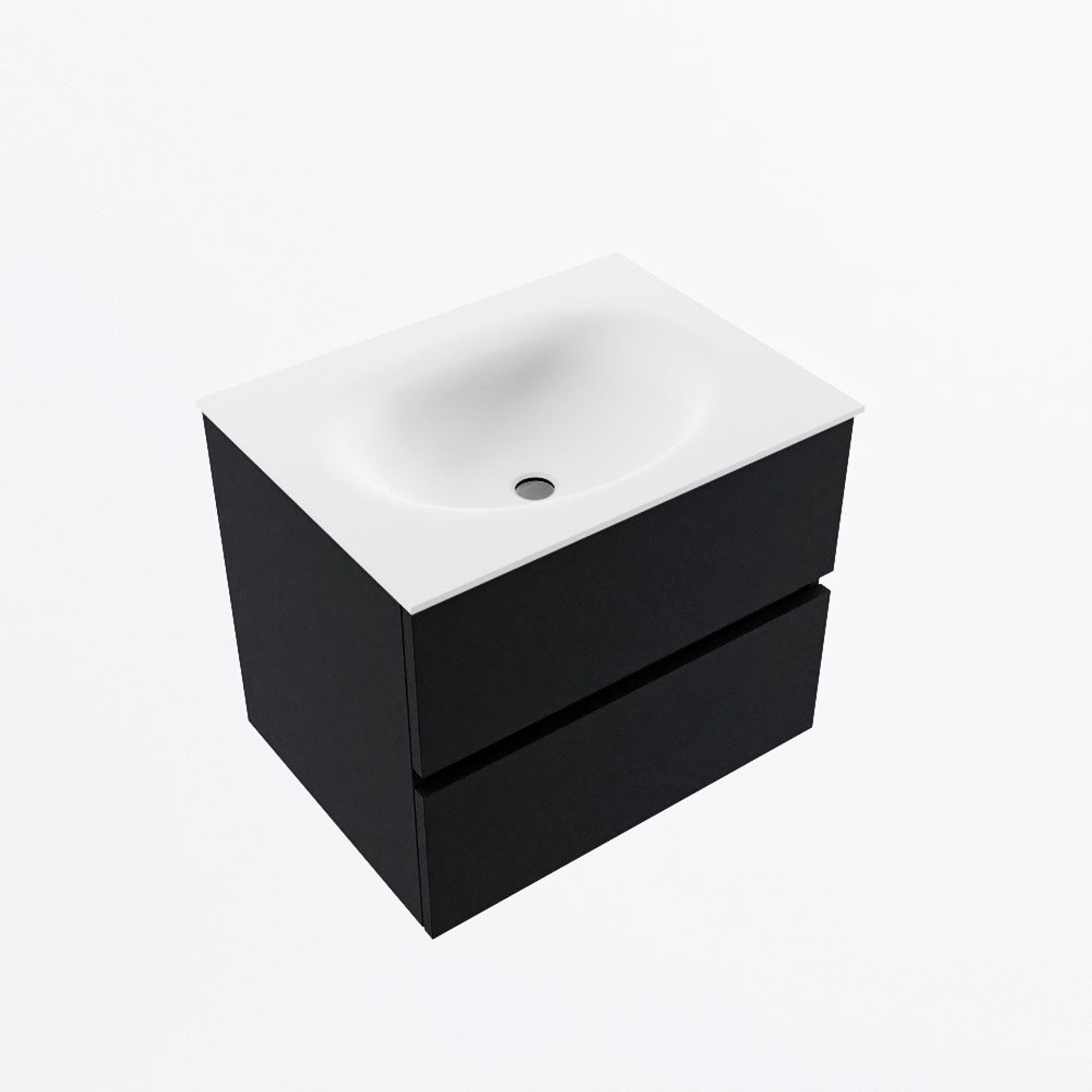 MONDIAZ VICA 60cm badmeubel onderkast Urban 2 lades. Wastafel MOON midden zonder kraangat, kleur Talc.