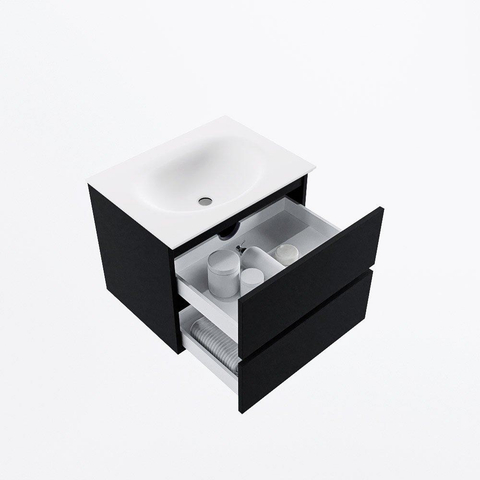 Niet alleen is dit badmeubel een visueel genot, het is ook uiterst praktisch in gebruik. De twee lades bieden voldoende opbergruimte voor al je badkamerspullen, waardoor je badkamer netjes en georganiseerd blijft. De wastafel zonder kraangat zorgt voor een strakke look en biedt voldoende ruimte voor dagelijkse verzorgingsrituelen.
