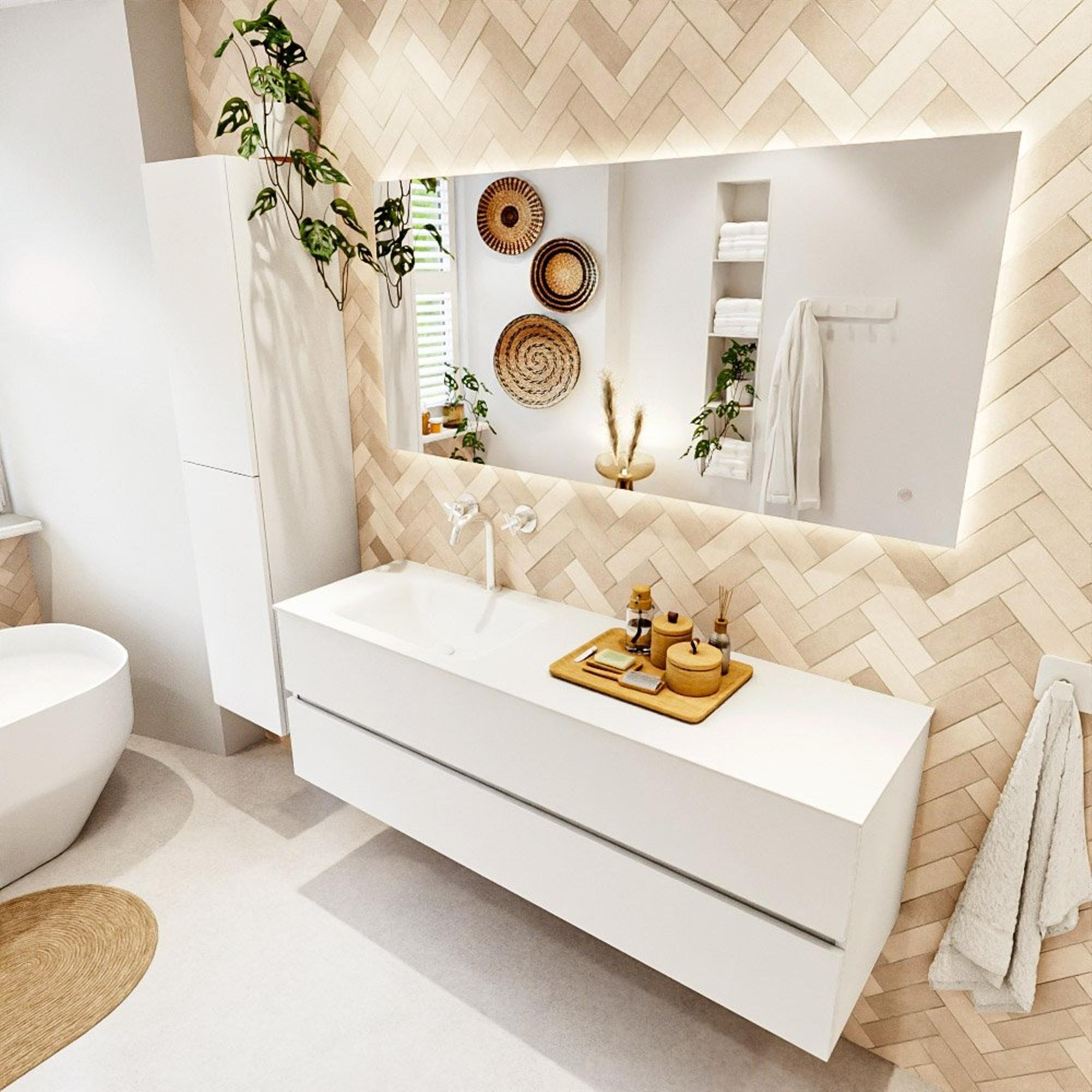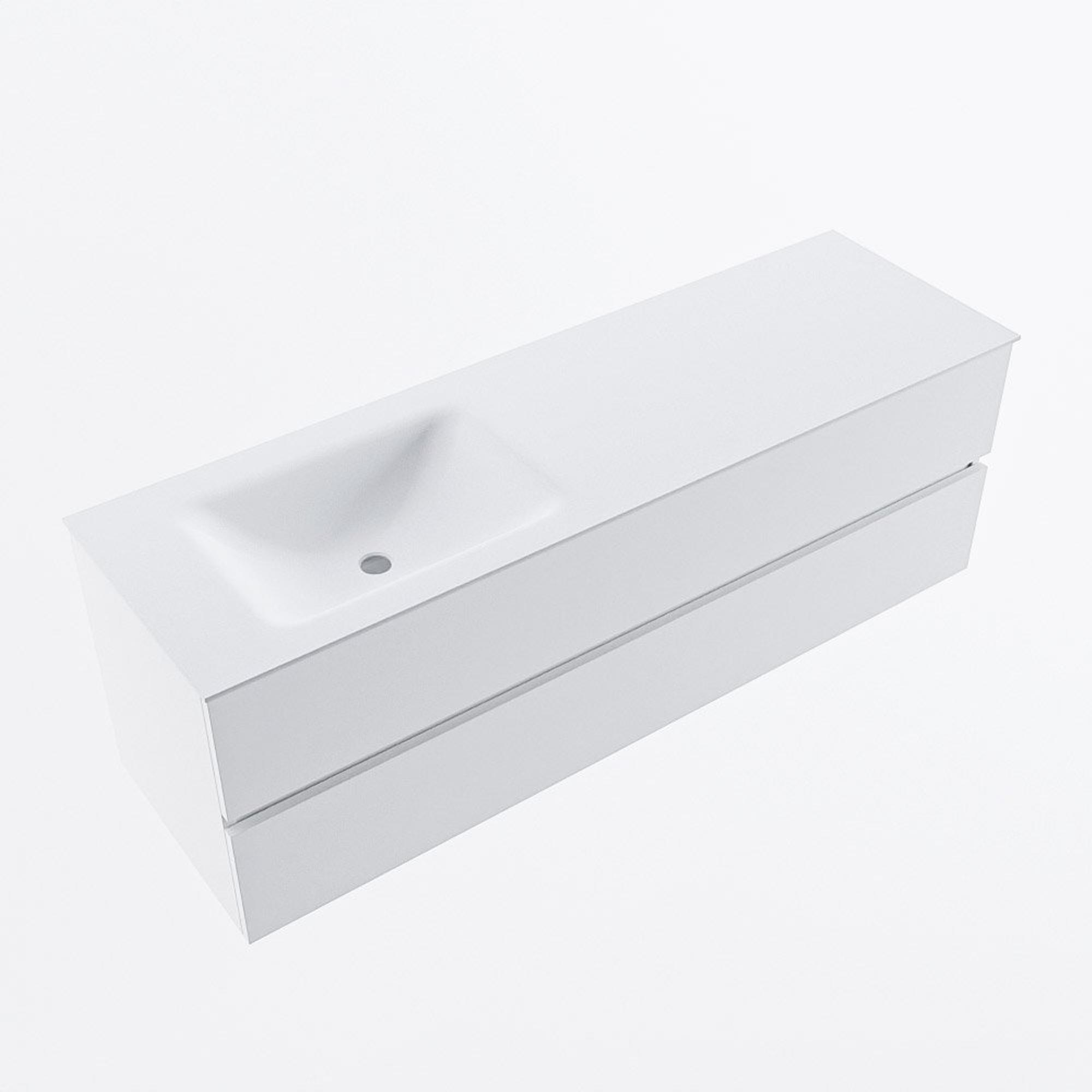 MONDIAZ VICA 150cm badmeubel onderkast Talc 2 lades. Wastafel CLOUD links 1 kraangat, kleur Talc.
