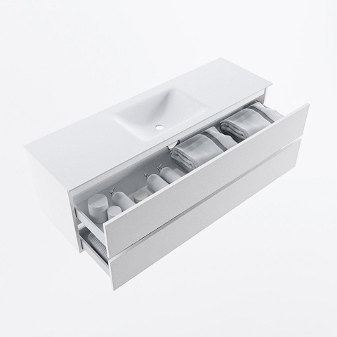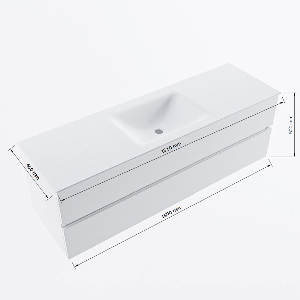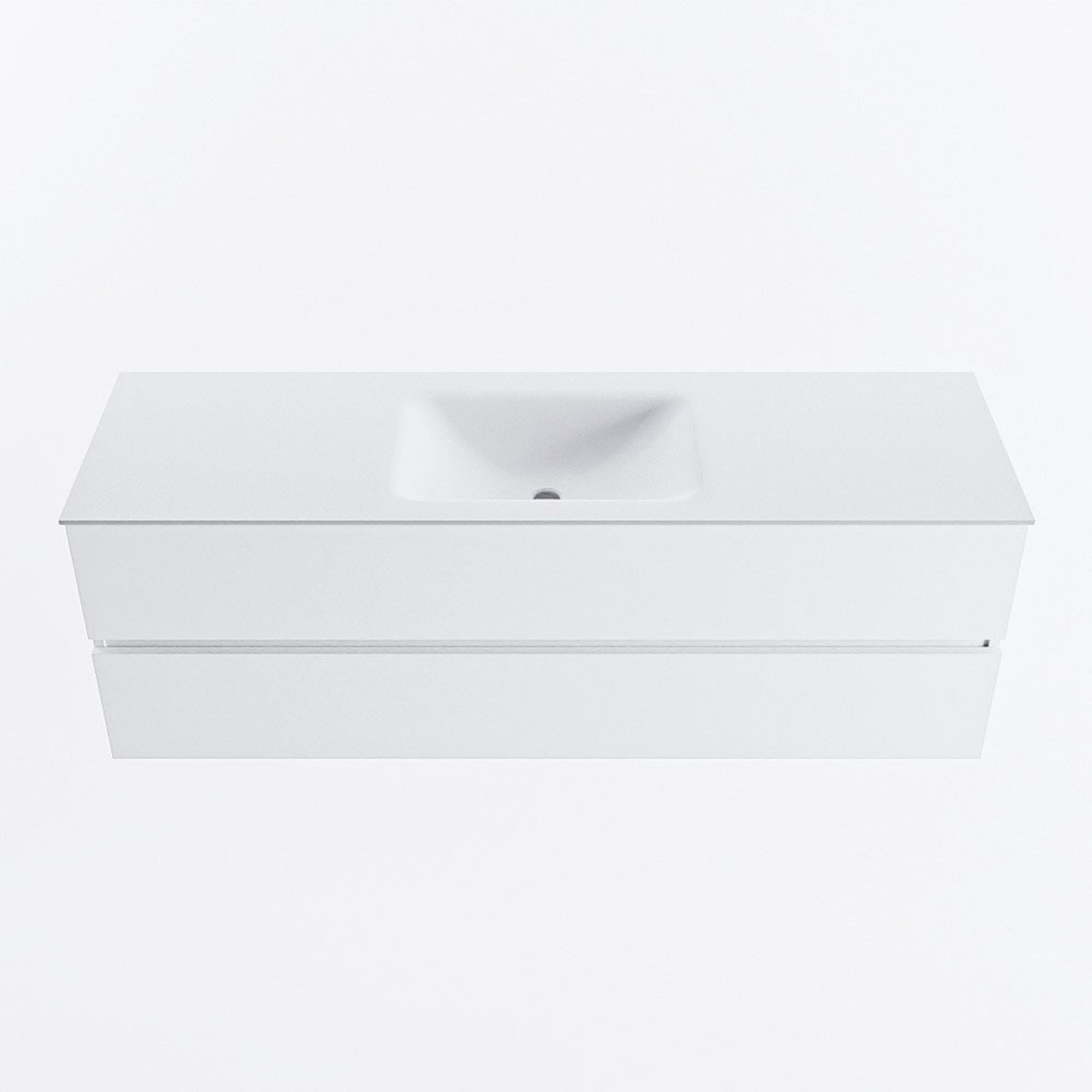 MONDIAZ VICA 150cm badmeubel onderkast Talc 2 lades. Wastafel CLOUD midden zonder kraangat, kleur Talc.
