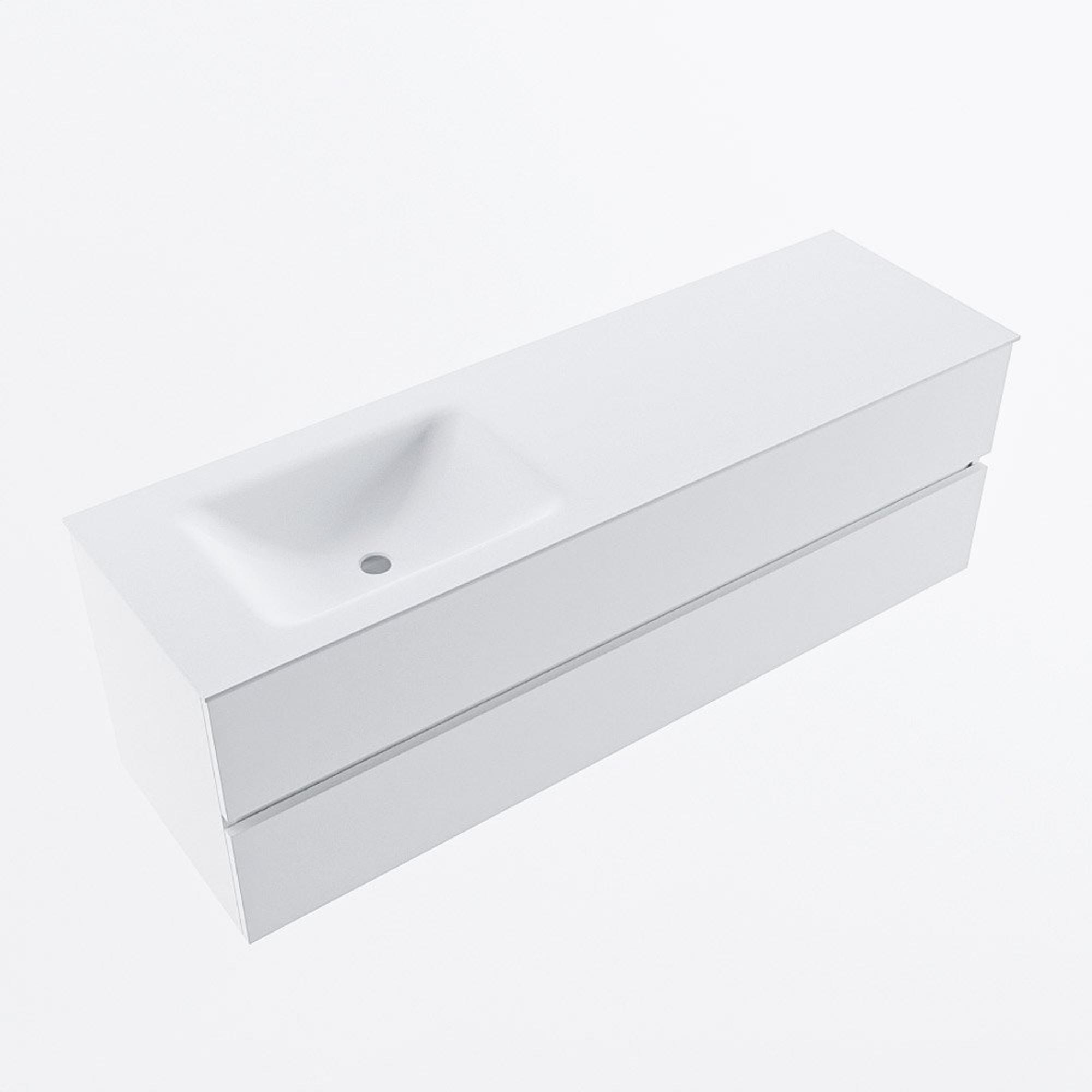 MONDIAZ VICA 150cm badmeubel onderkast Talc 2 lades. Wastafel CLOUD links zonder kraangat, kleur Talc.