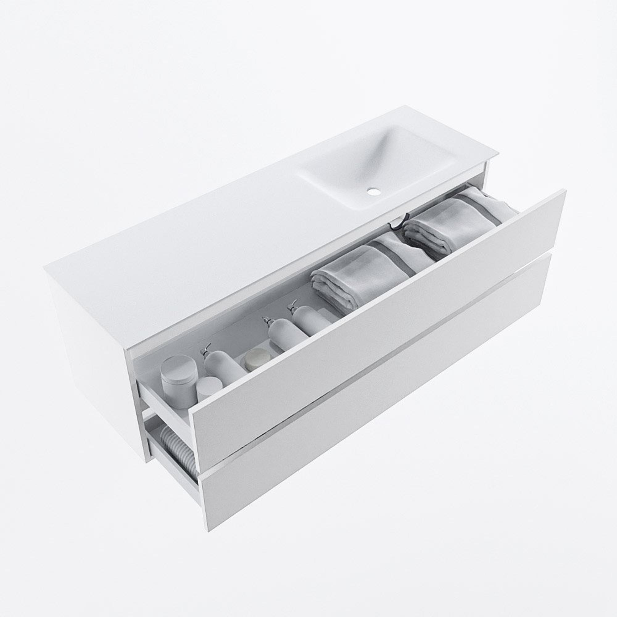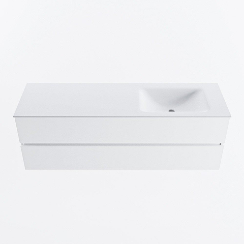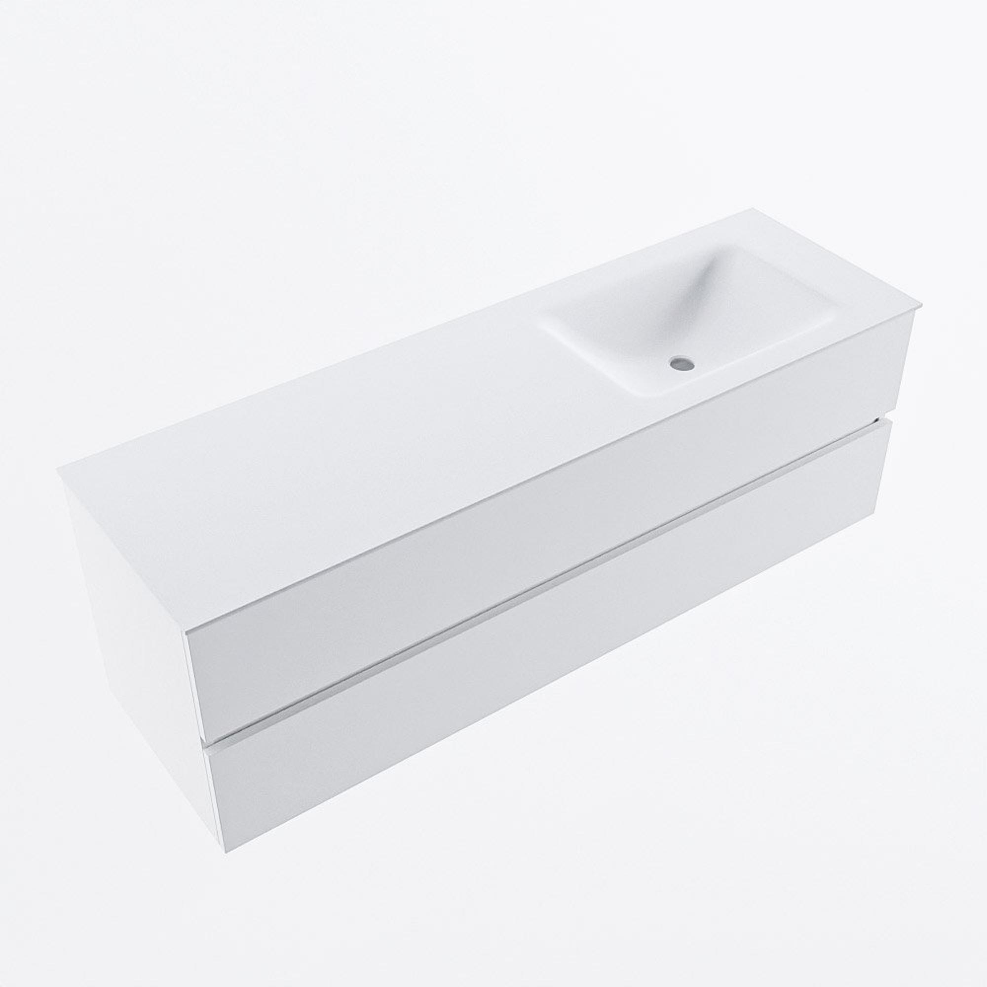 MONDIAZ VICA 150cm badmeubel onderkast Talc 2 lades. Wastafel CLOUD rechts zonder kraangat, kleur Talc.