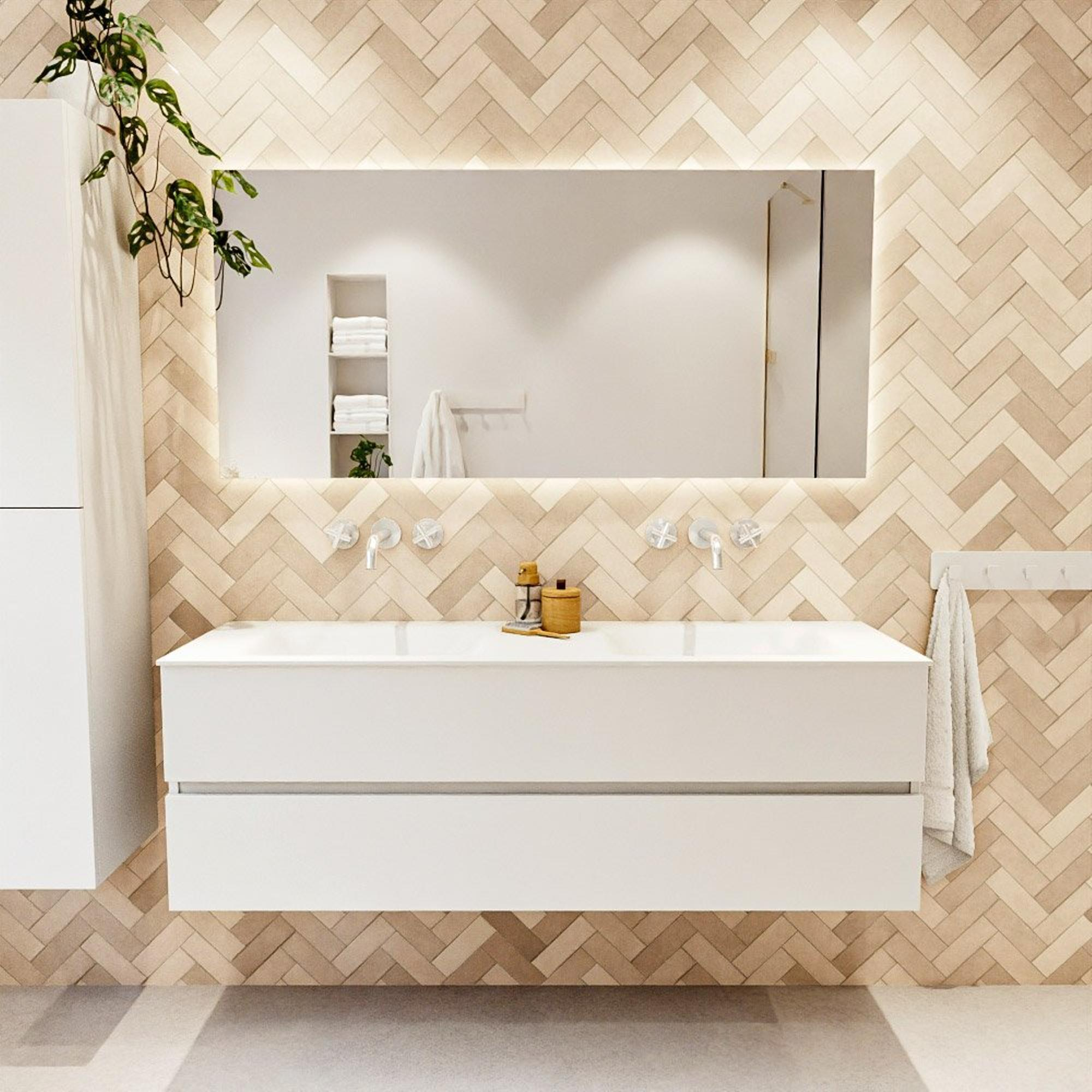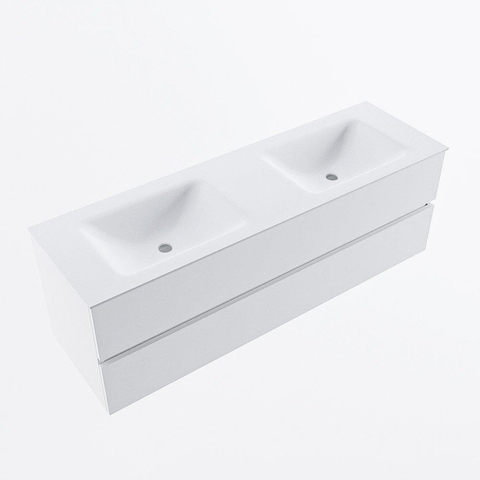 MONDIAZ VICA 150cm badmeubel onderkast Talc 2 lades. Wastafel CLOUD dubbel zonder kraangat, kleur Talc.