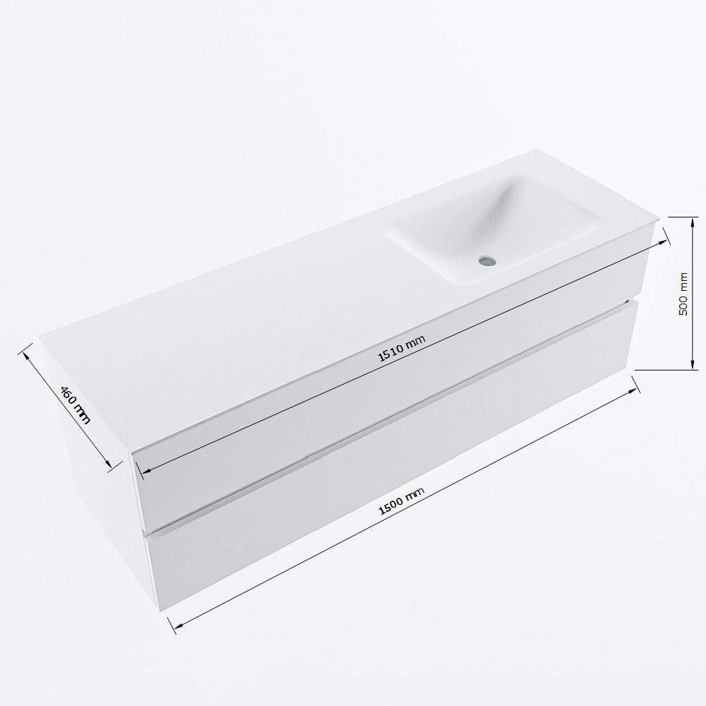 MONDIAZ VICA 150cm badmeubel onderkast Washed Oak 2 lades. Wastafel CLOUD rechts 1 kraangat, kleur Talc.