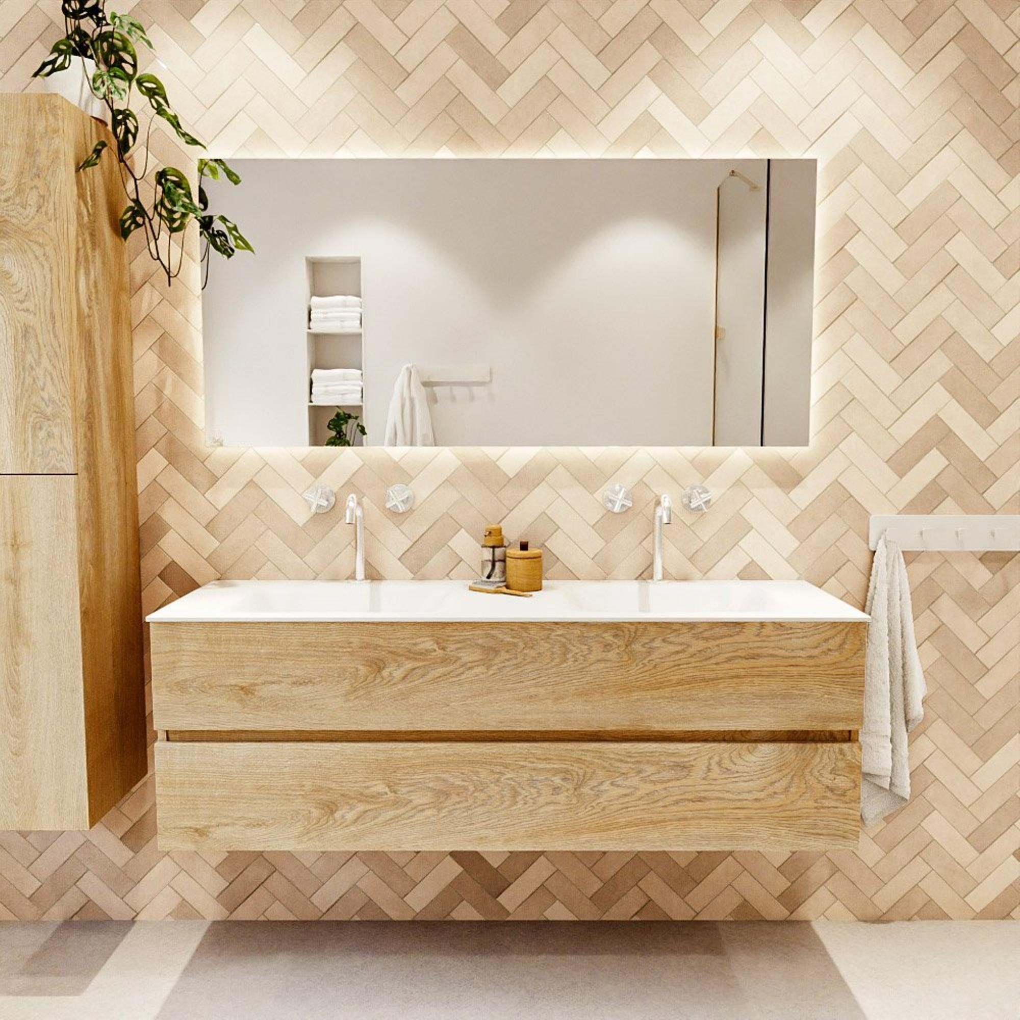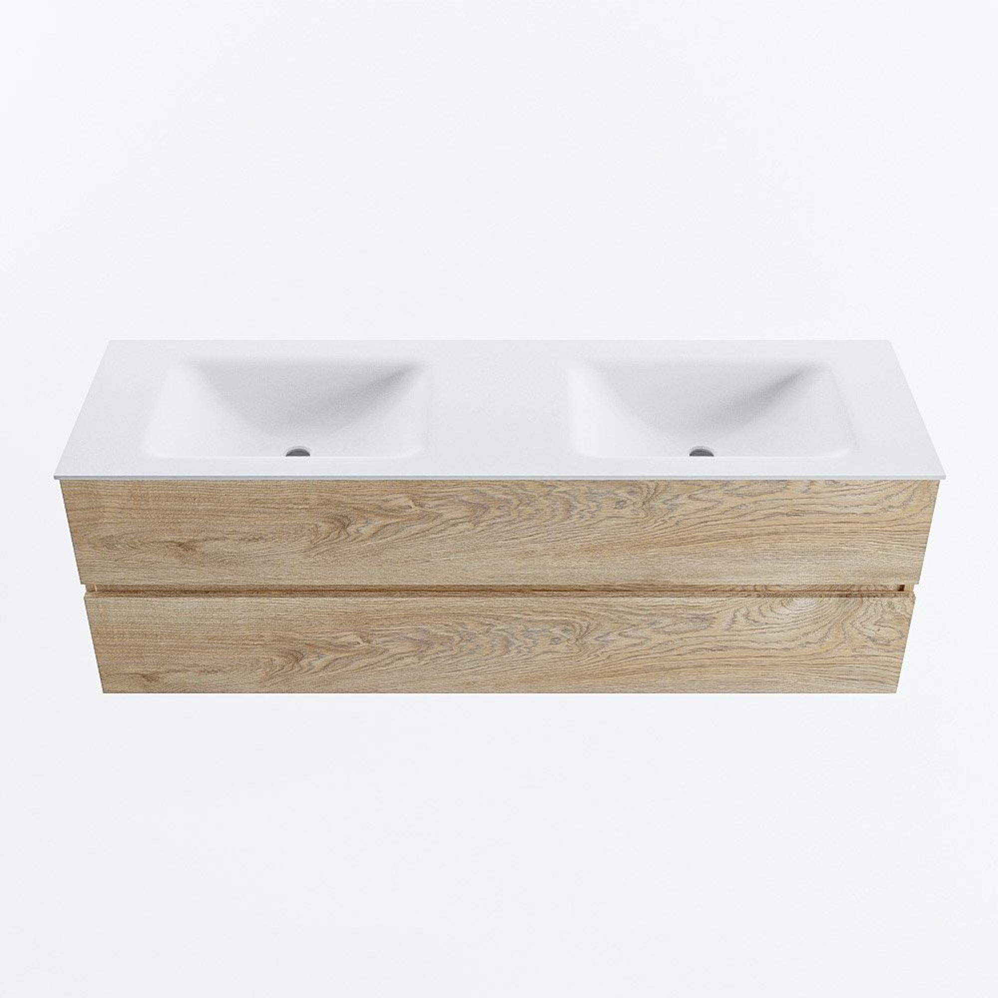 MONDIAZ VICA 150cm badmeubel onderkast Washed Oak 2 lades. Wastafel CLOUD dubbel 2 kraangaten, kleur Talc.