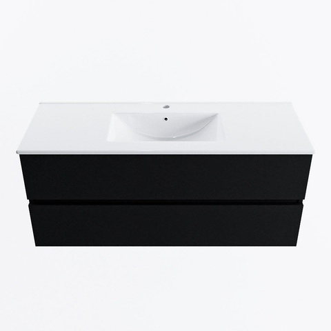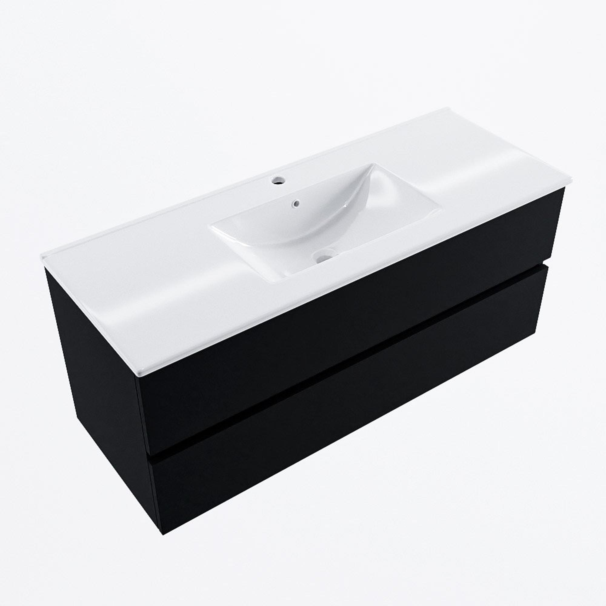 MONDIAZ VICA 120cm badmeubel onderkast Urban 2 lades. Wastafel DENIA midden 1 kraangat, kleur Glanzend Wit.