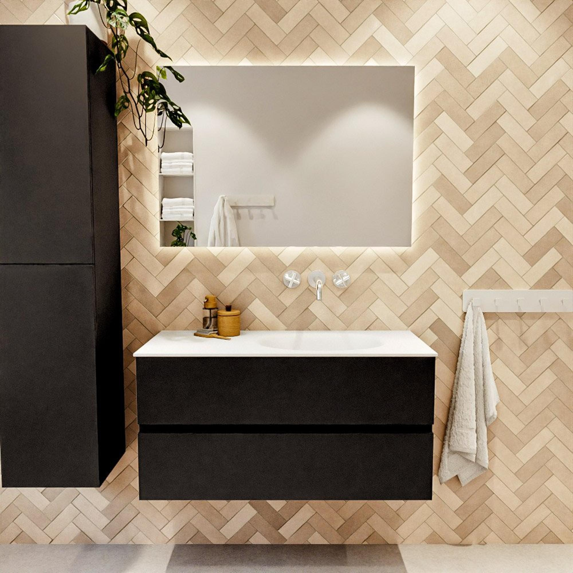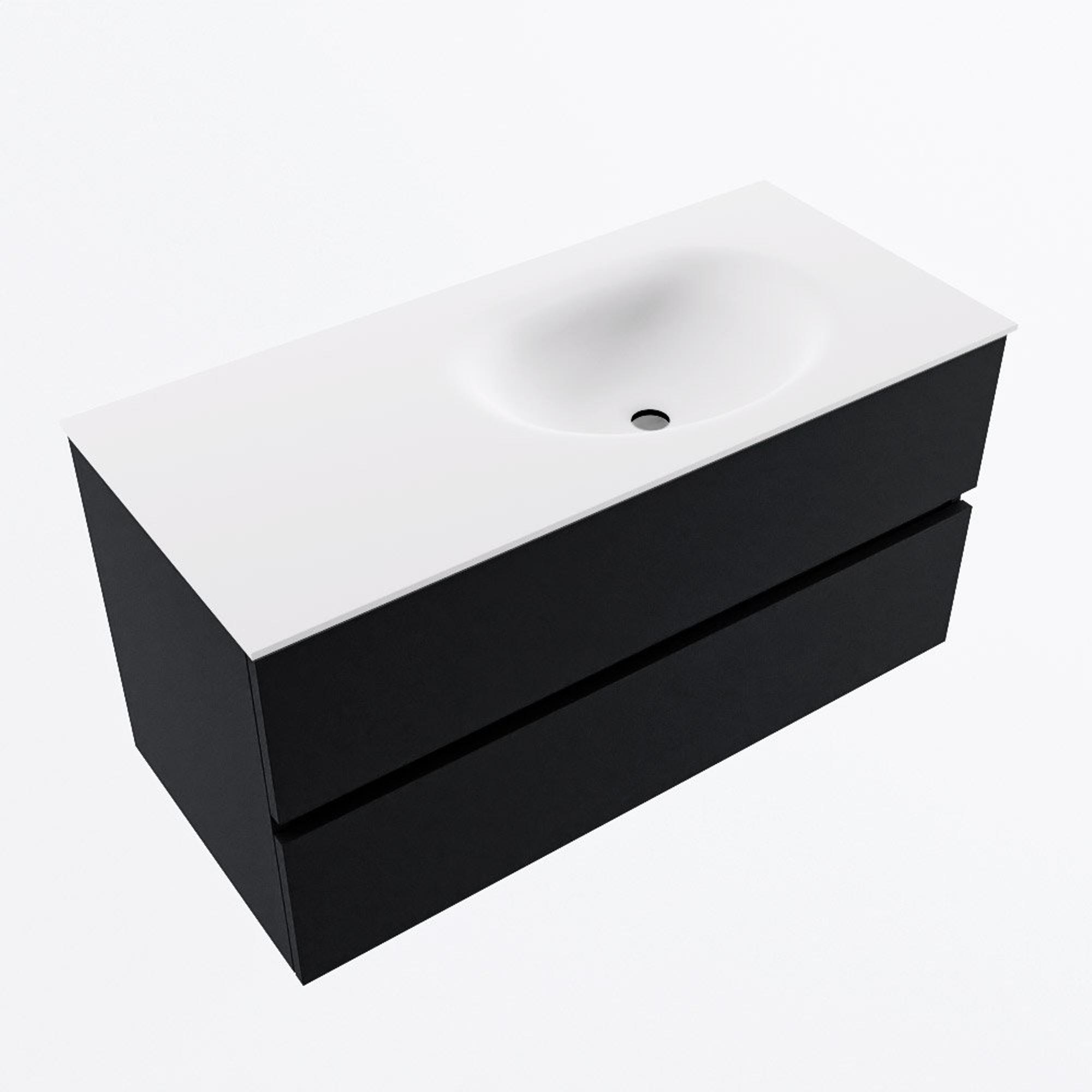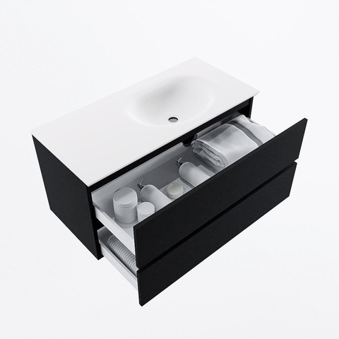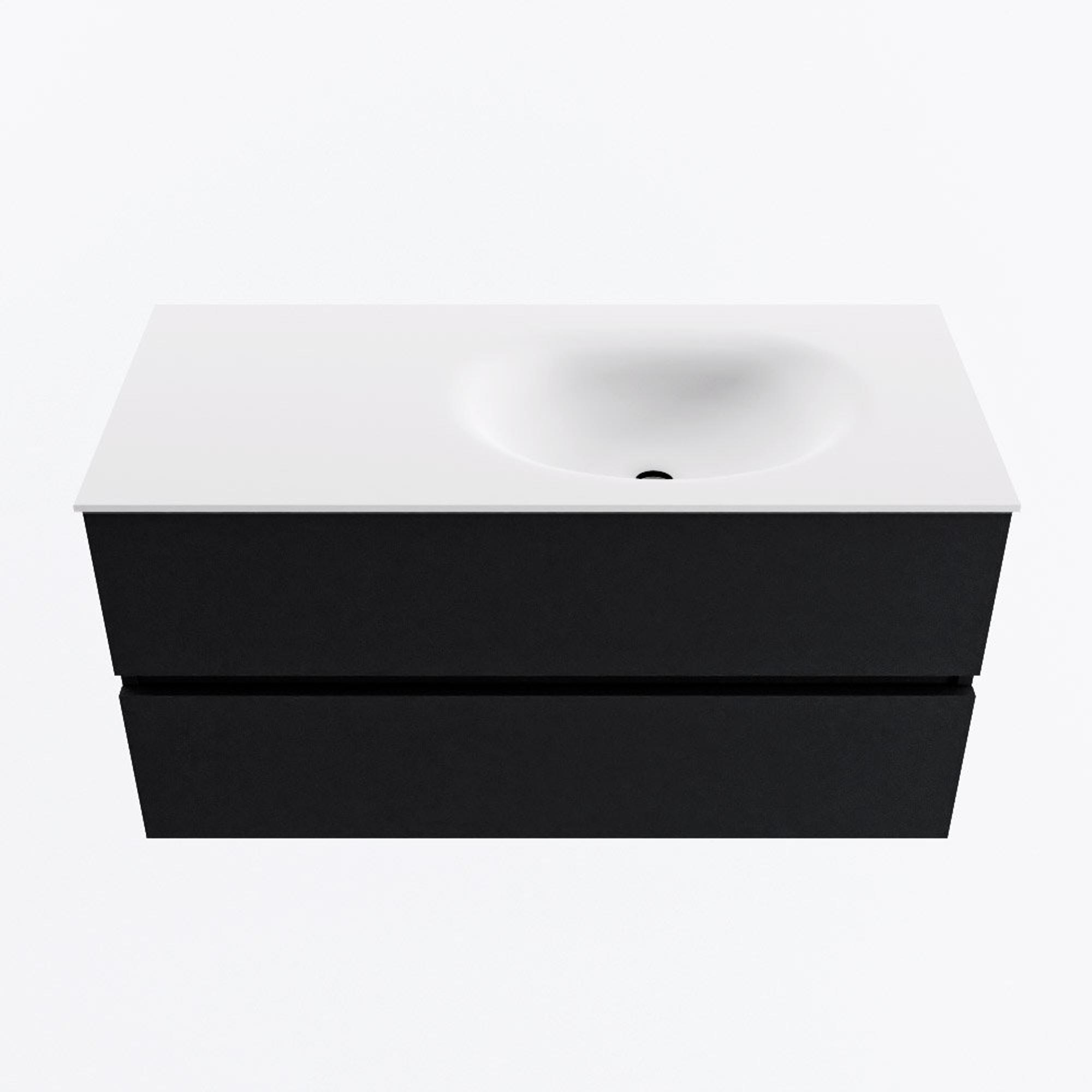 MONDIAZ VICA 100cm badmeubel onderkast Urban 2 lades. Wastafel MOON rechts zonder kraangat, kleur Talc.