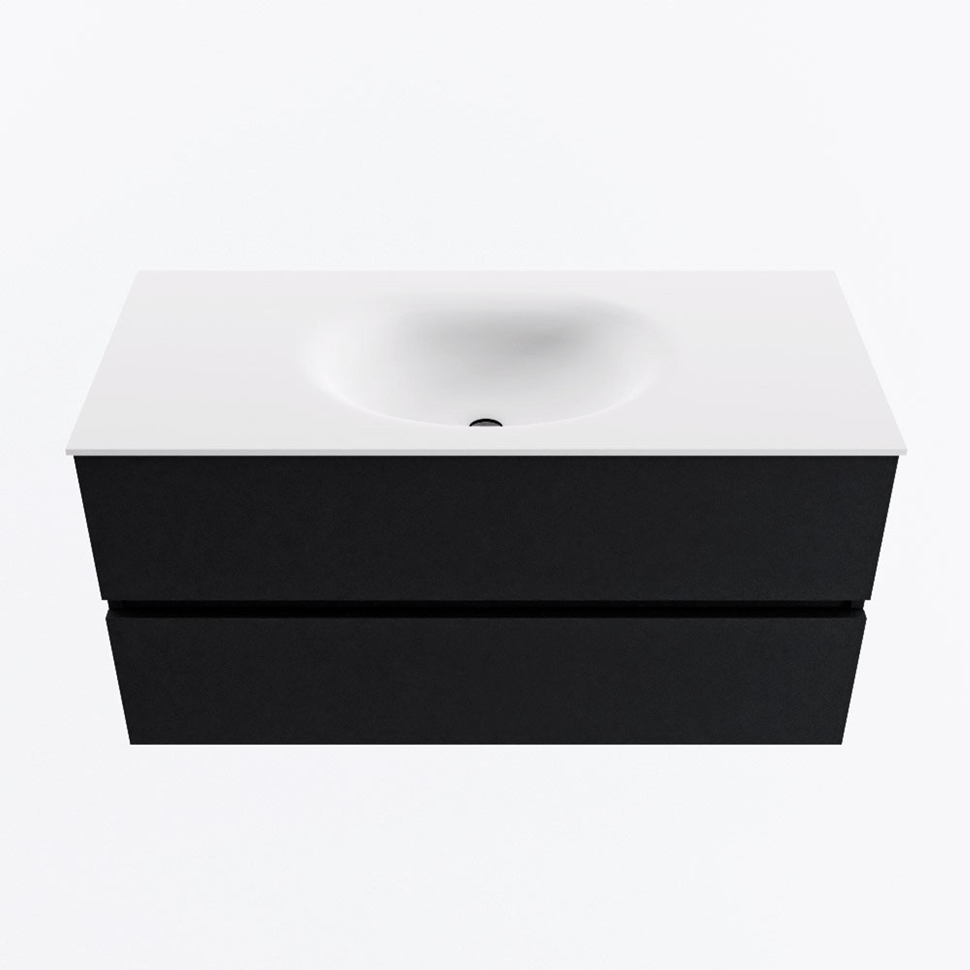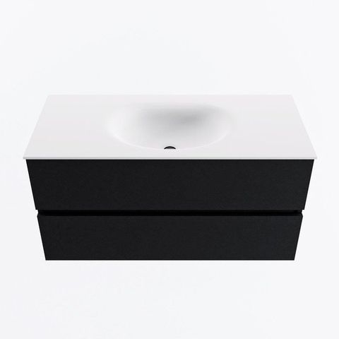 MONDIAZ VICA 100cm badmeubel onderkast Urban 2 lades. Wastafel MOON midden 1 kraangat, kleur Talc.
