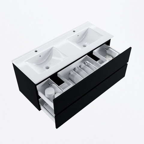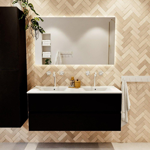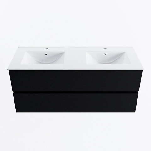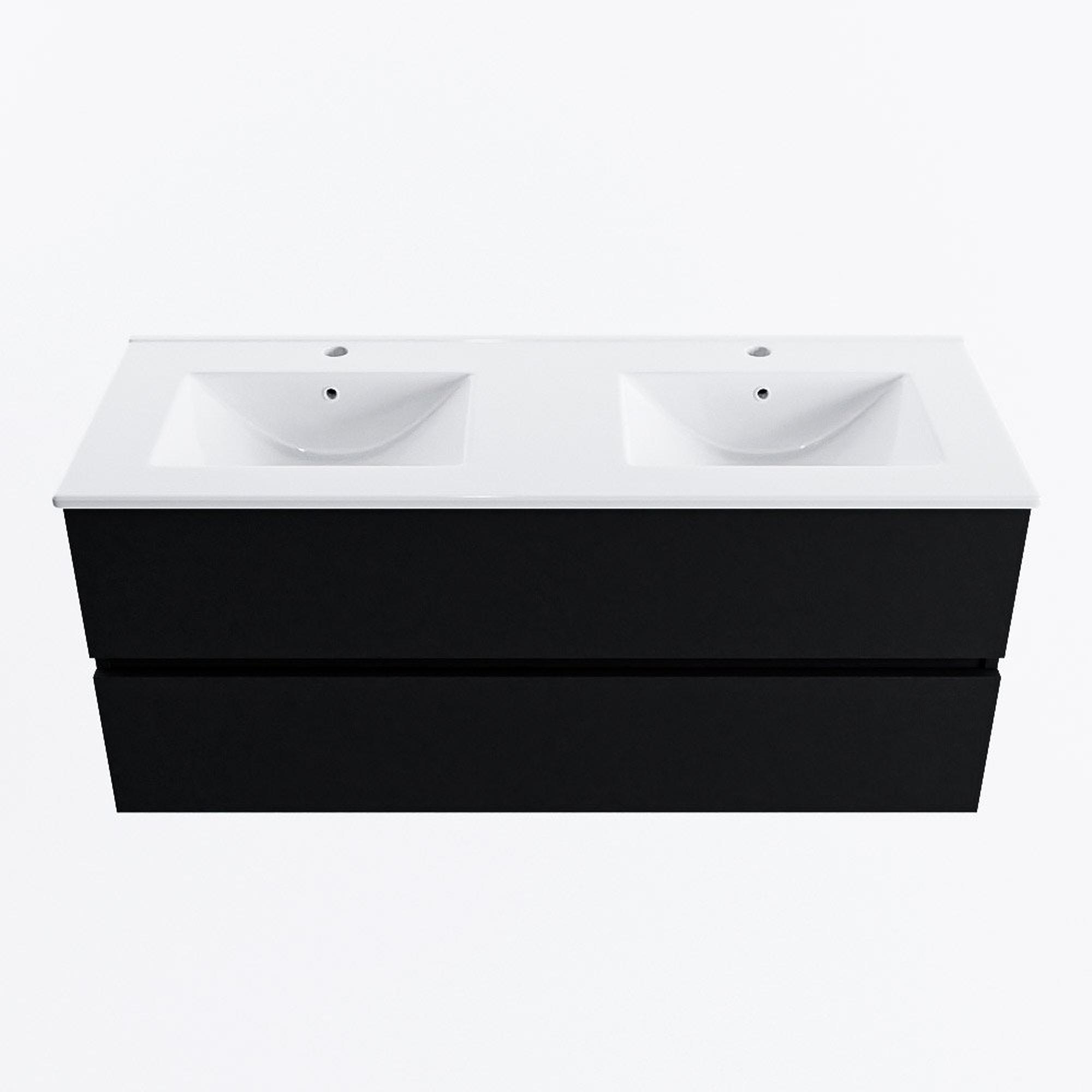 MONDIAZ VICA 120cm badmeubel onderkast Urban 2 lades. Wastafel DENIA dubbel 2 kraangaten, kleur Glanzend Wit.