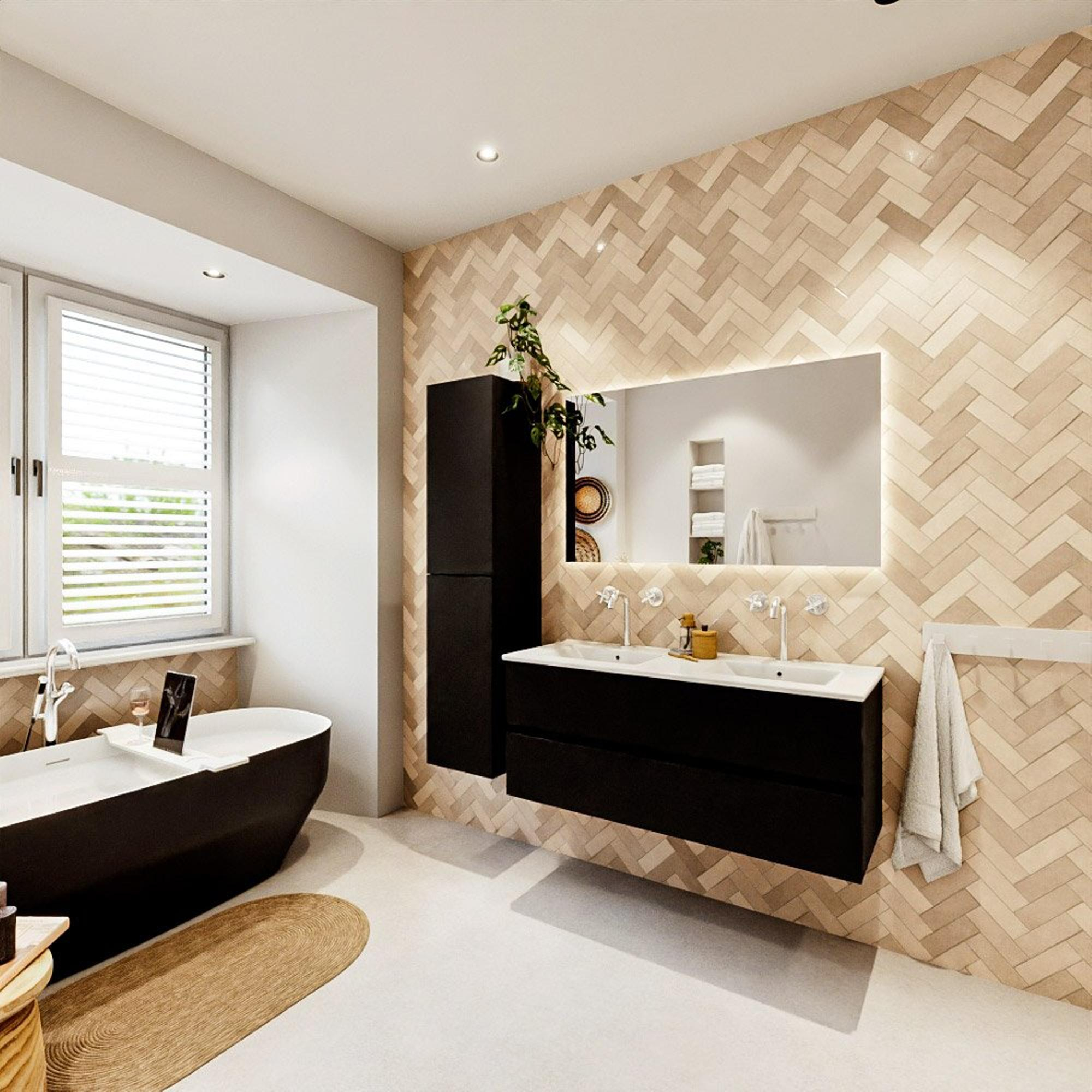 Dit badmeubel is ontworpen met een modern tintje dat perfect past bij eigentijdse badkamerstijlen. De strakke lijnen en minimalistische uitstraling zorgen voor een frisse en trendy look. De MONDIAZ VICA 120cm badmeubel onderkast Urban 2 lades. Wastafel DENIA dubbel 2 kraangaten is de ideale keuze voor wie op zoek is naar een badkamermeubel dat zowel functioneel als stijlvol is.