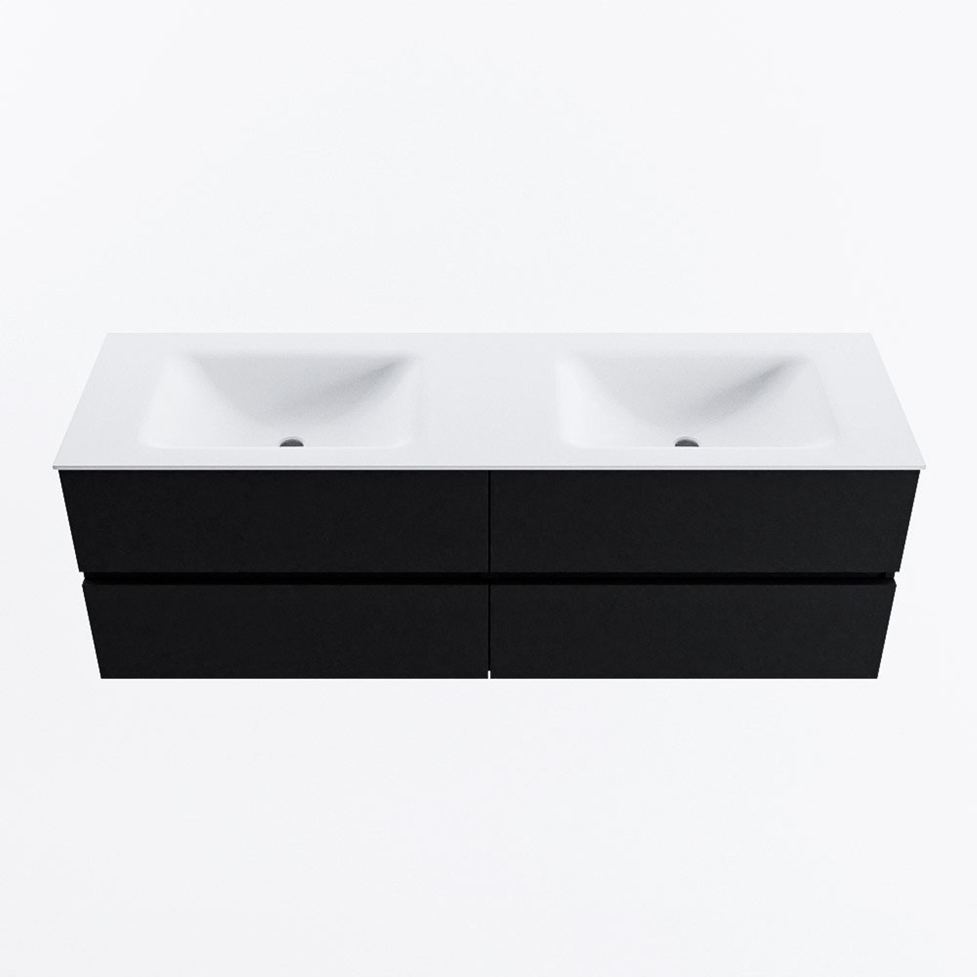 MONDIAZ VICA 150cm badmeubel onderkast Urban 4 lades. Wastafel CLOUD dubbel 2 kraangaten, kleur Talc.