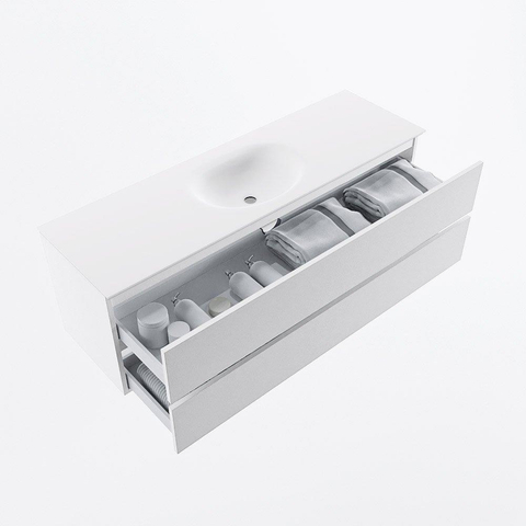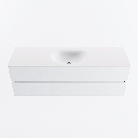 MONDIAZ VICA 150cm badmeubel onderkast Talc 2 lades. Wastafel MOON midden 1 kraangat, kleur Talc.