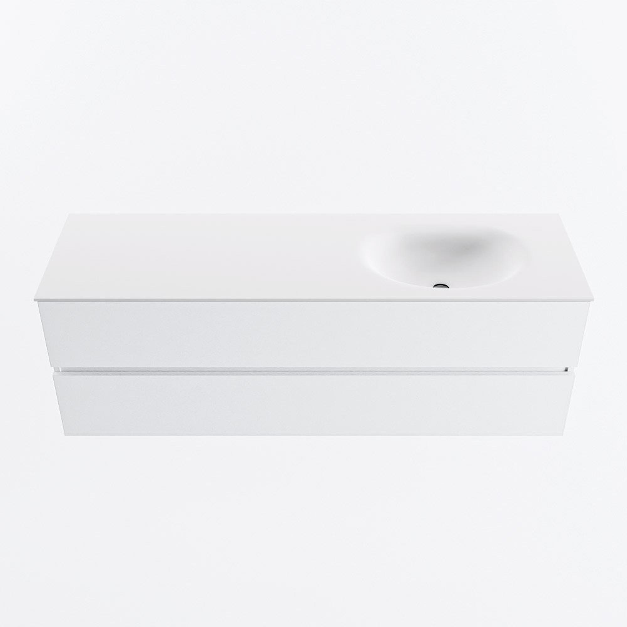 MONDIAZ VICA 150cm badmeubel onderkast Talc 2 lades. Wastafel MOON rechts 1 kraangat, kleur Talc.
