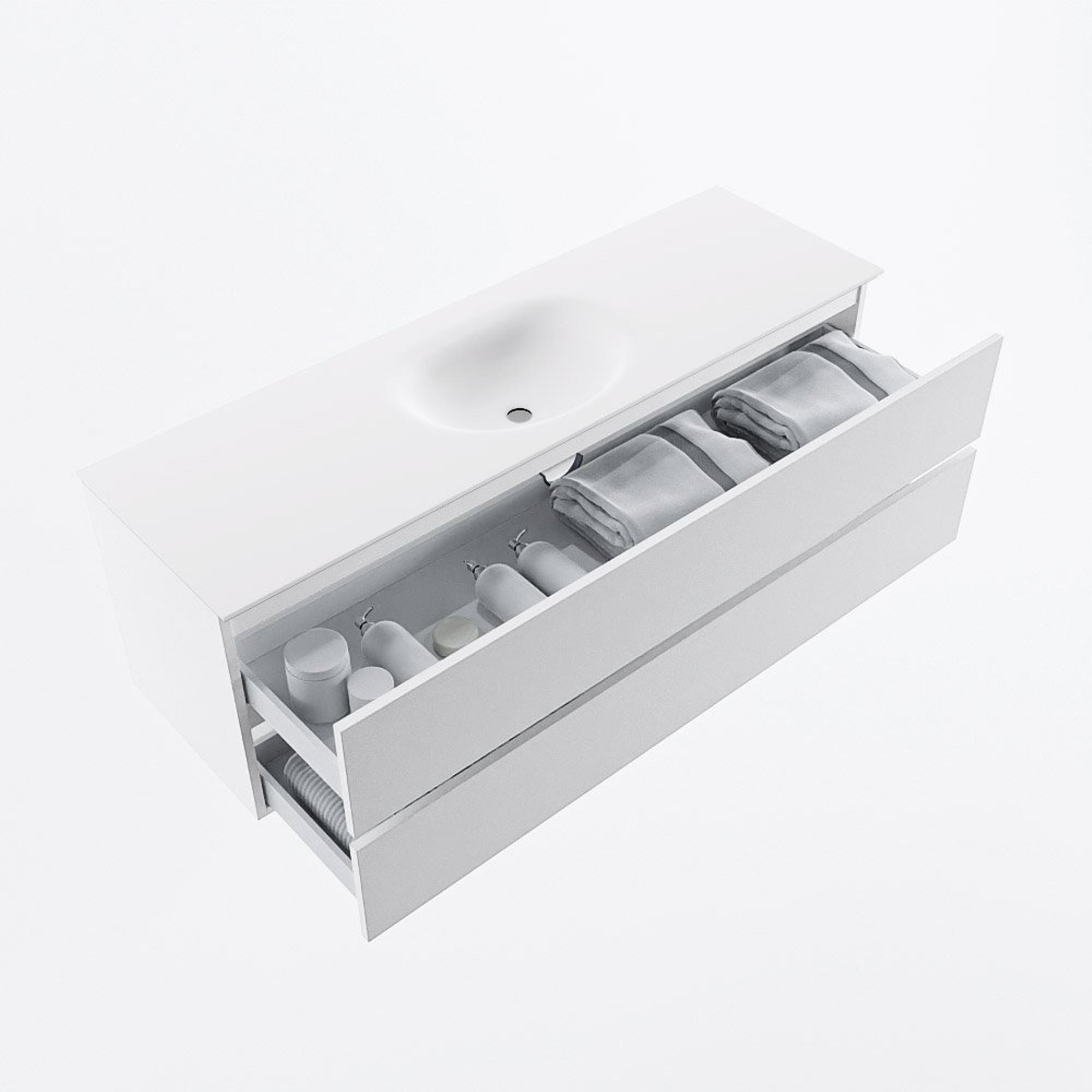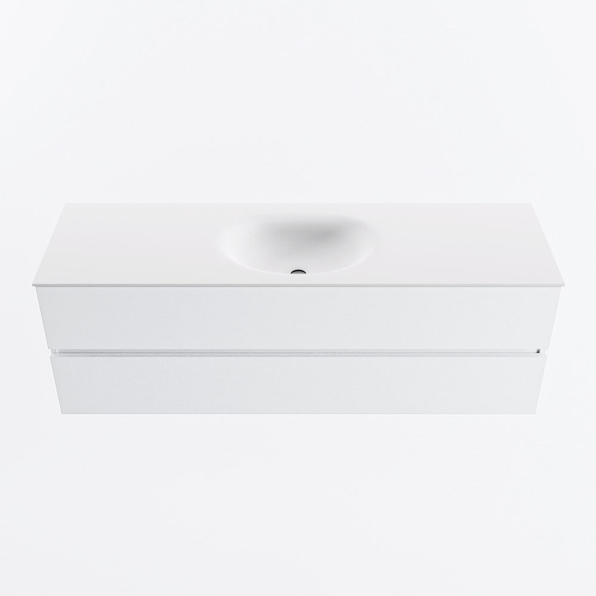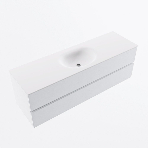 MONDIAZ VICA 150cm badmeubel onderkast Talc 2 lades. Wastafel MOON midden zonder kraangat, kleur Talc.