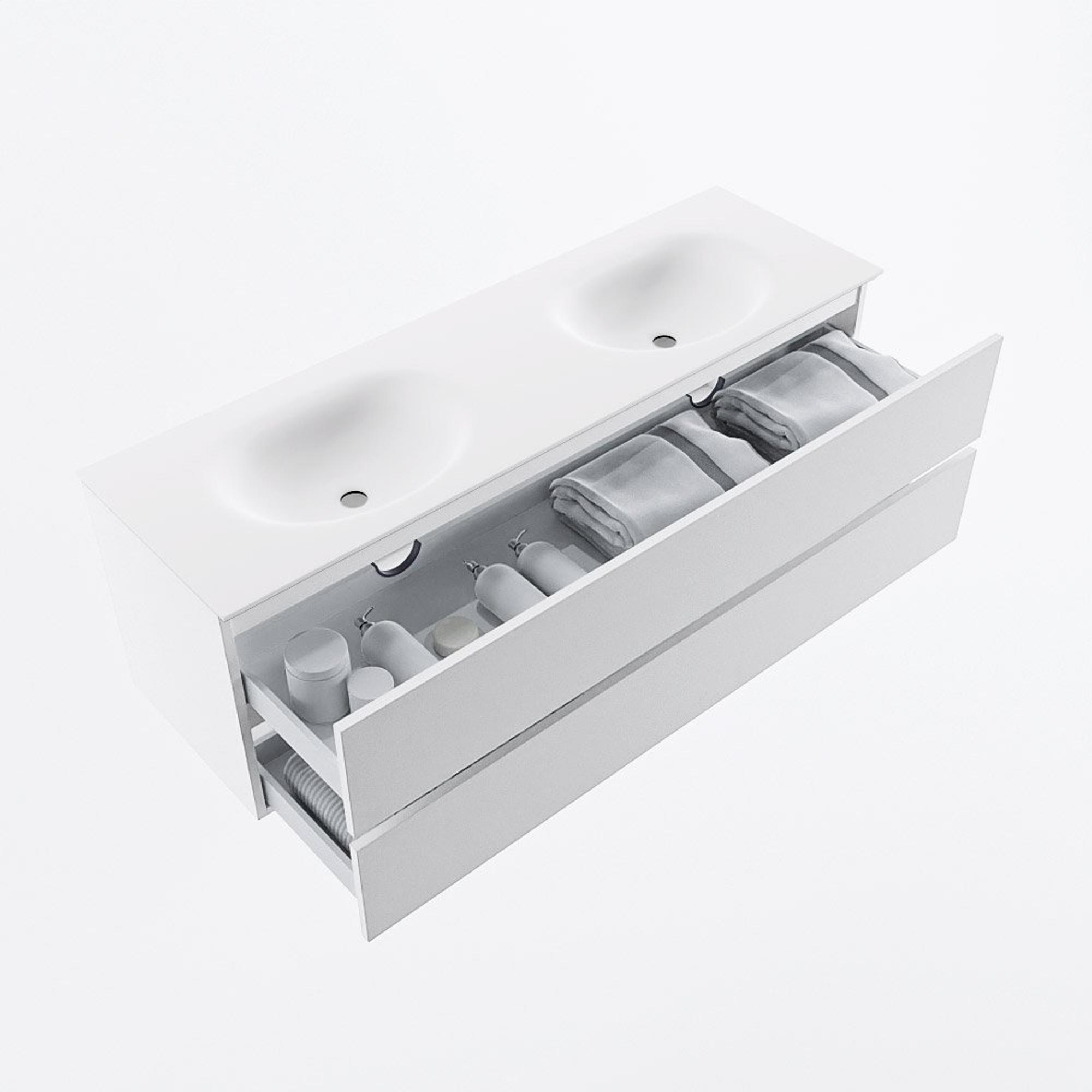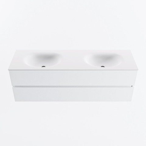 MONDIAZ VICA 150cm badmeubel onderkast Talc 2 lades. Wastafel MOON dubbel zonder kraangat, kleur Talc.
