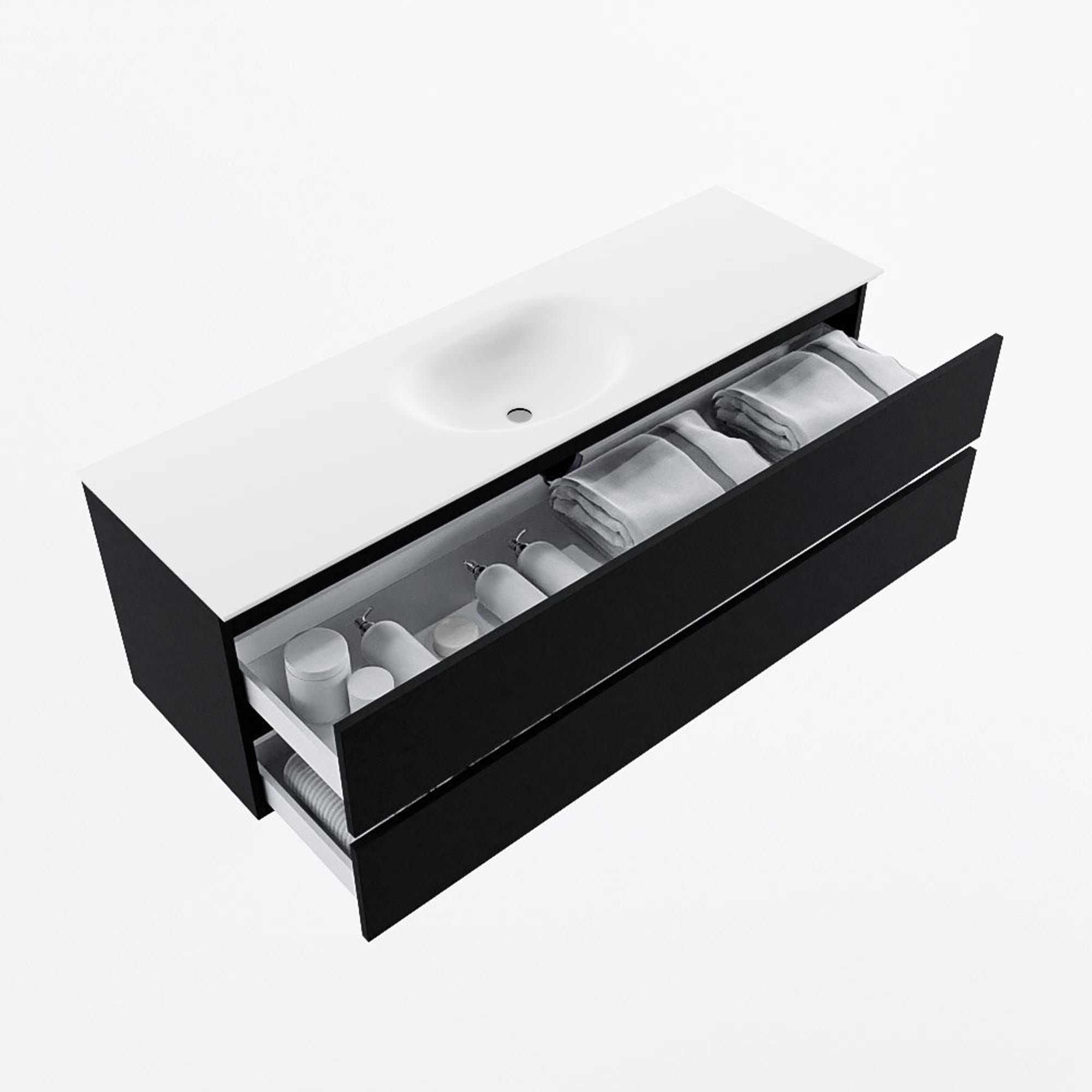 MONDIAZ VICA 150cm badmeubel onderkast Urban 2 lades. Wastafel MOON midden 1 kraangat, kleur Talc.