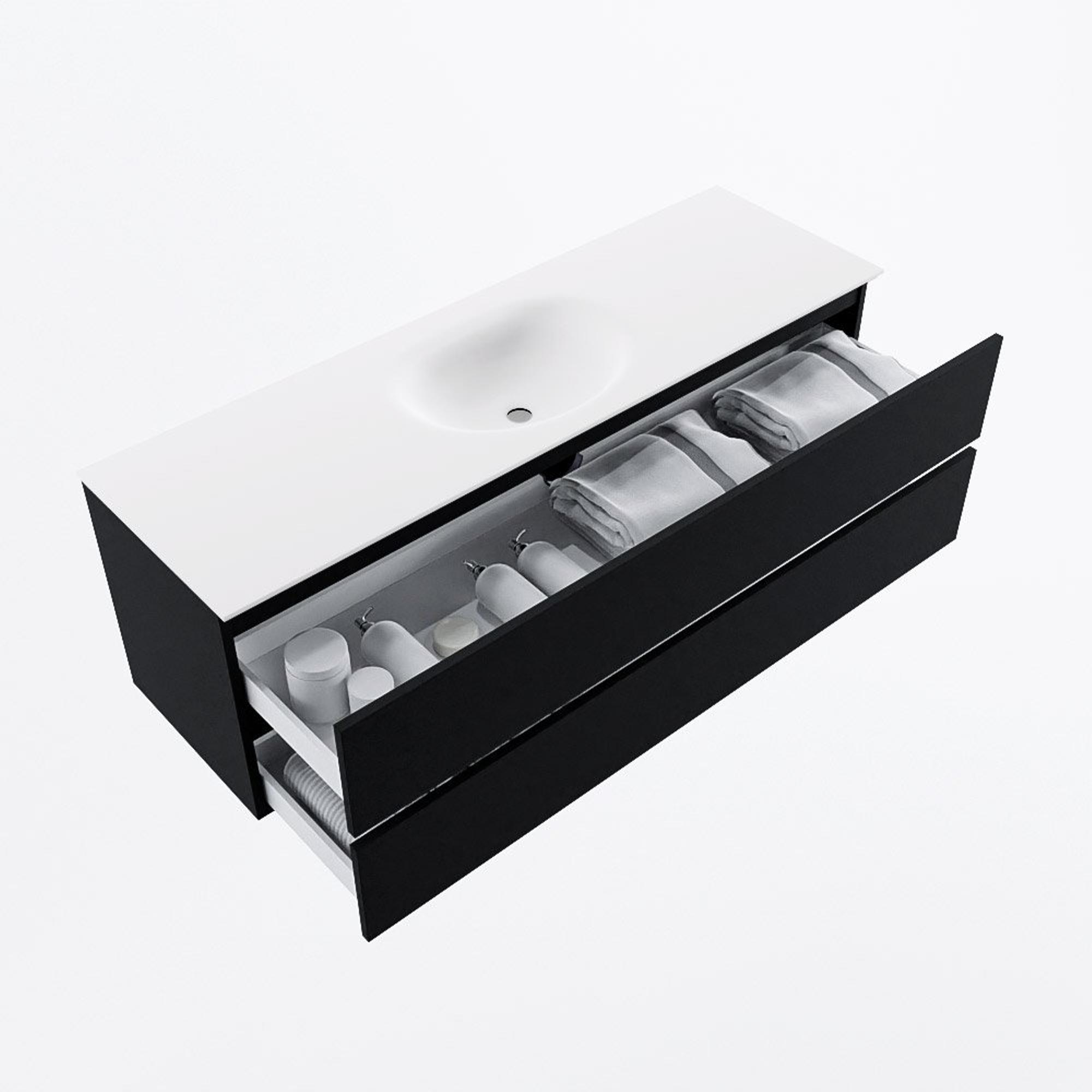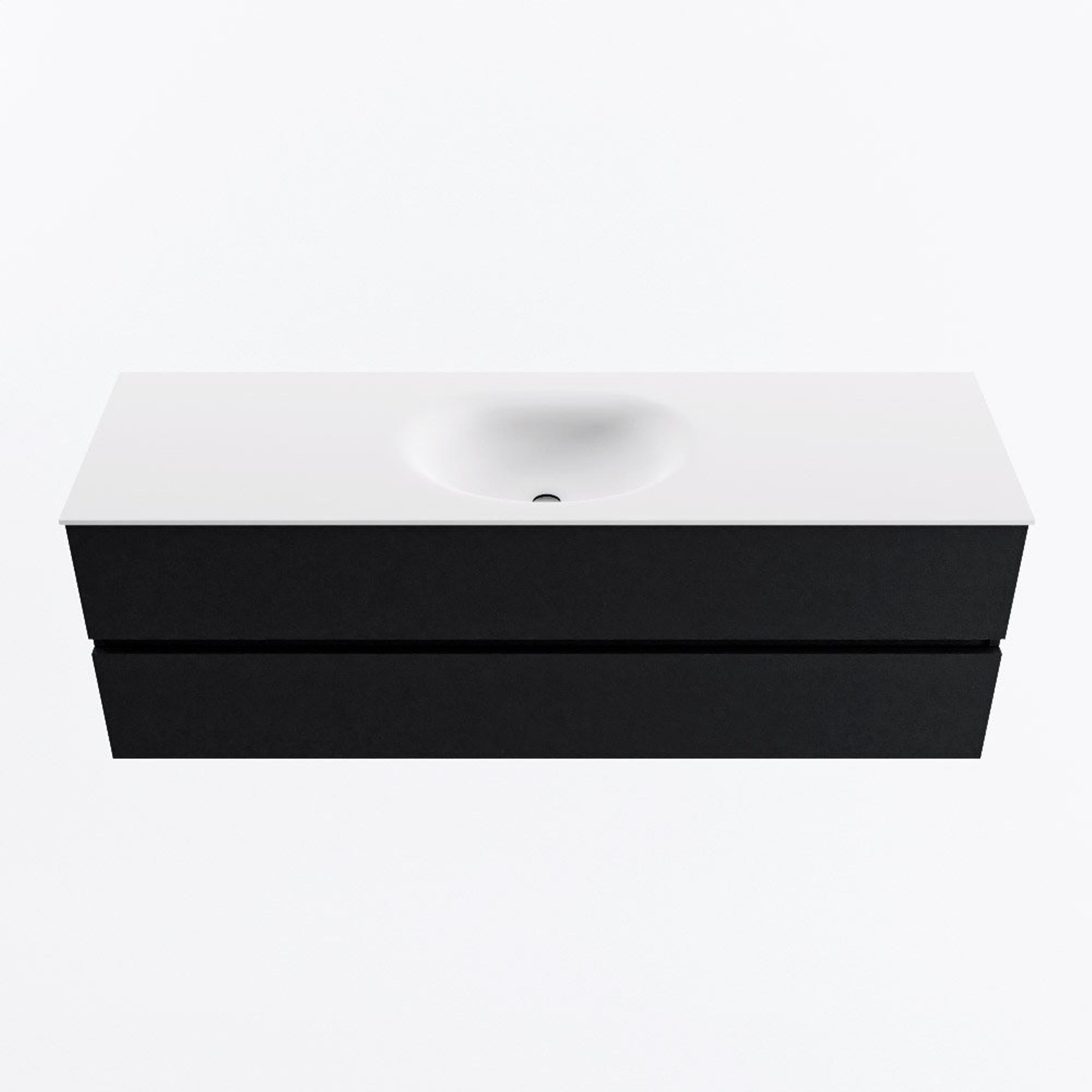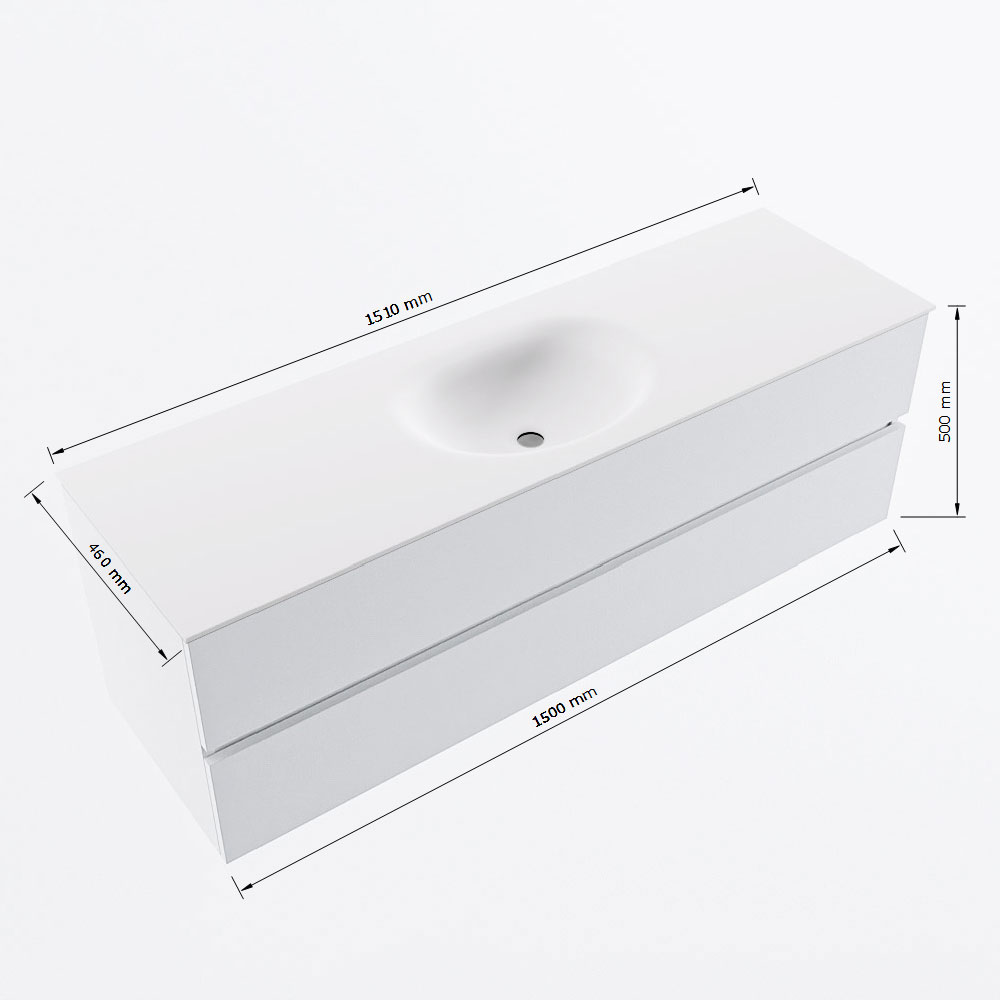 MONDIAZ VICA 150cm badmeubel onderkast Urban 2 lades. Wastafel MOON midden zonder kraangat, kleur Talc.