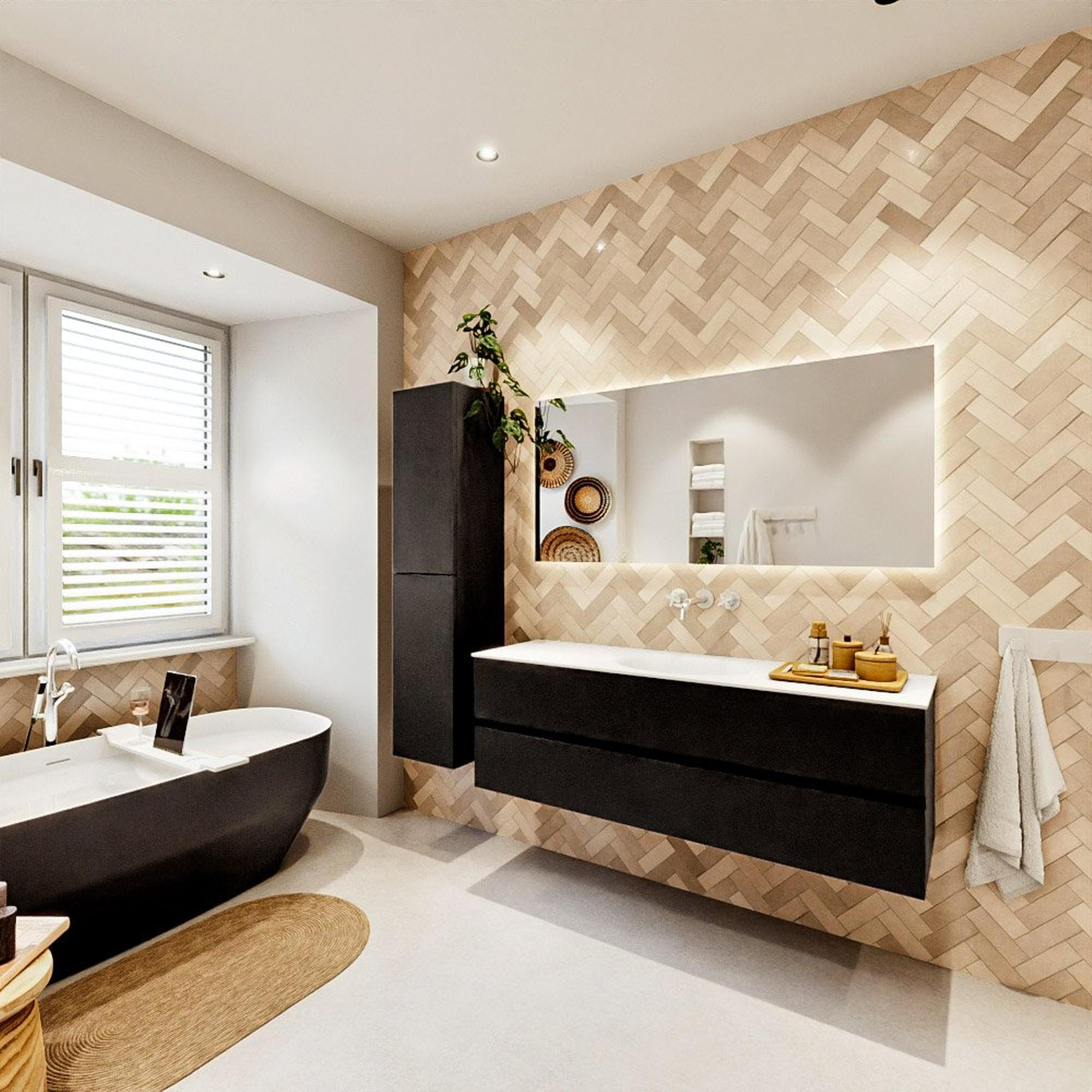 Dit badmeubel straalt pure stijl uit, waardoor het een blikvanger wordt in jouw badkamer. De subtiele kleur Talc geeft een frisse en moderne uitstraling, terwijl de symmetrische vormgeving zorgt voor een gebalanceerd en harmonieus geheel. Met de MOON wastafel in het midden creëer je een centraal punt dat de aandacht trekt en de ruimte een gevoel van luxe geeft.