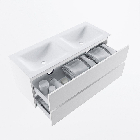 MONDIAZ VICA 120cm badmeubel onderkast Talc 2 lades. Wastafel CLOUD dubbel 2 kraangaten, kleur Talc.