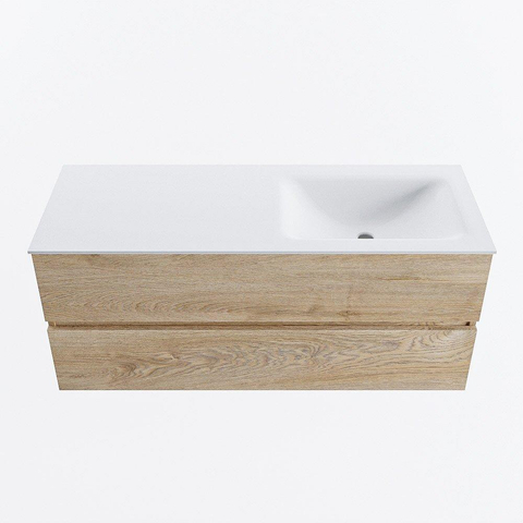 MONDIAZ VICA 120cm badmeubel onderkast Washed Oak 2 lades. Wastafel CLOUD rechts 1 kraangat, kleur Talc.