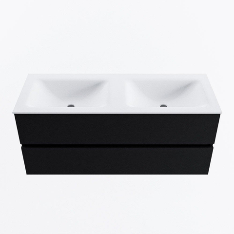 MONDIAZ VICA 120cm badmeubel onderkast Urban 2 lades. Wastafel CLOUD dubbel 2 kraangaten, kleur Talc.