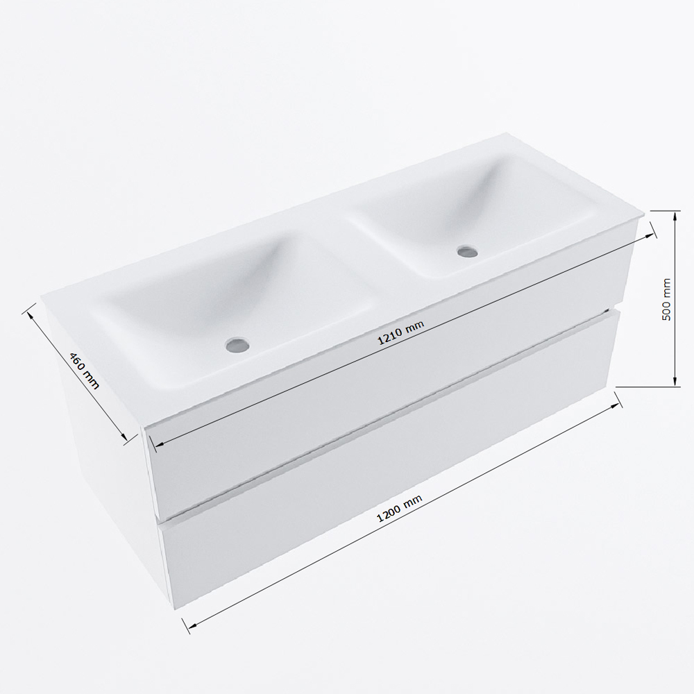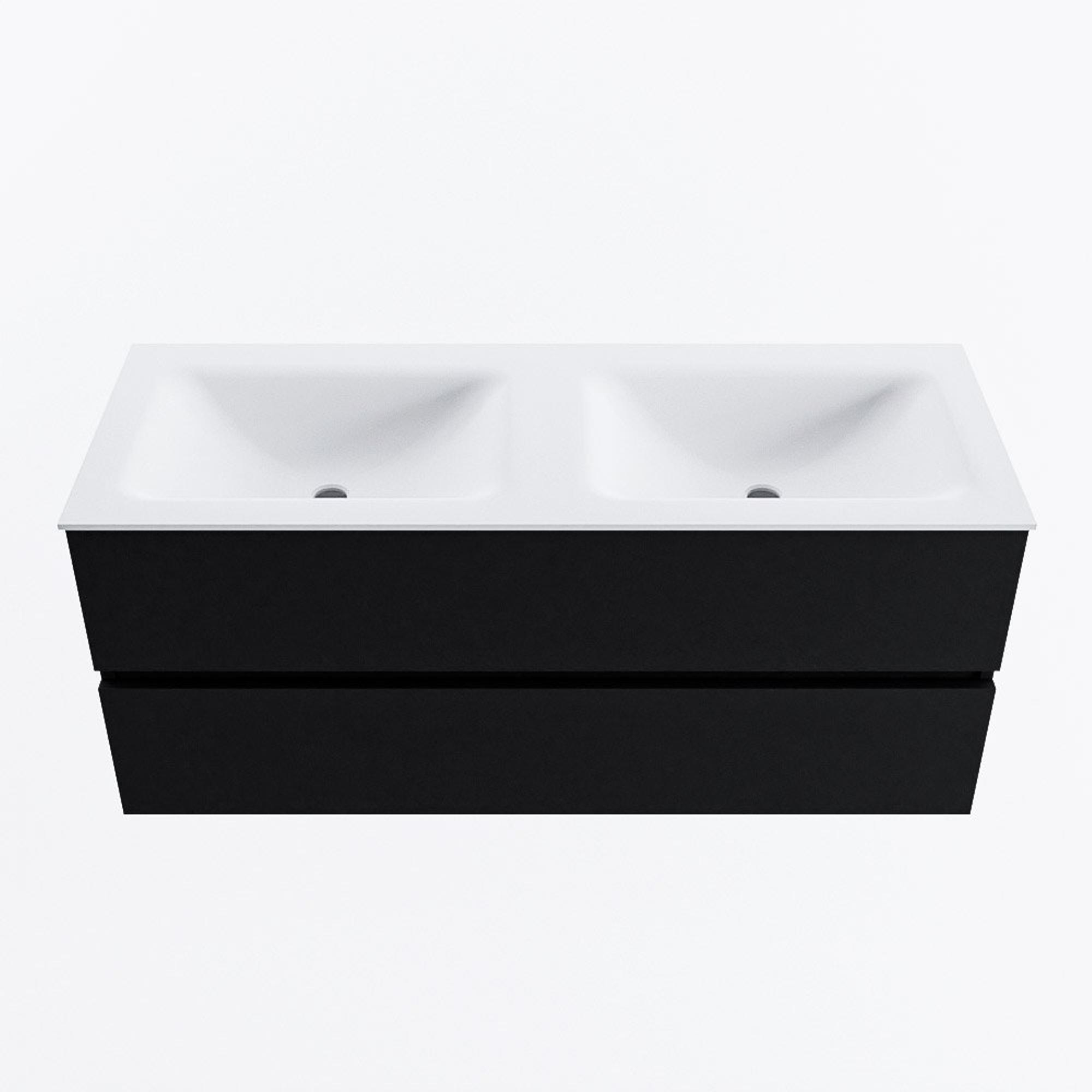 MONDIAZ VICA 120cm badmeubel onderkast Urban 2 lades. Wastafel CLOUD dubbel zonder kraangat, kleur Talc.