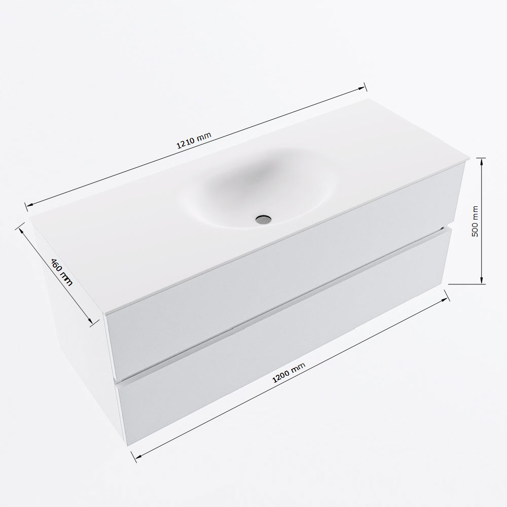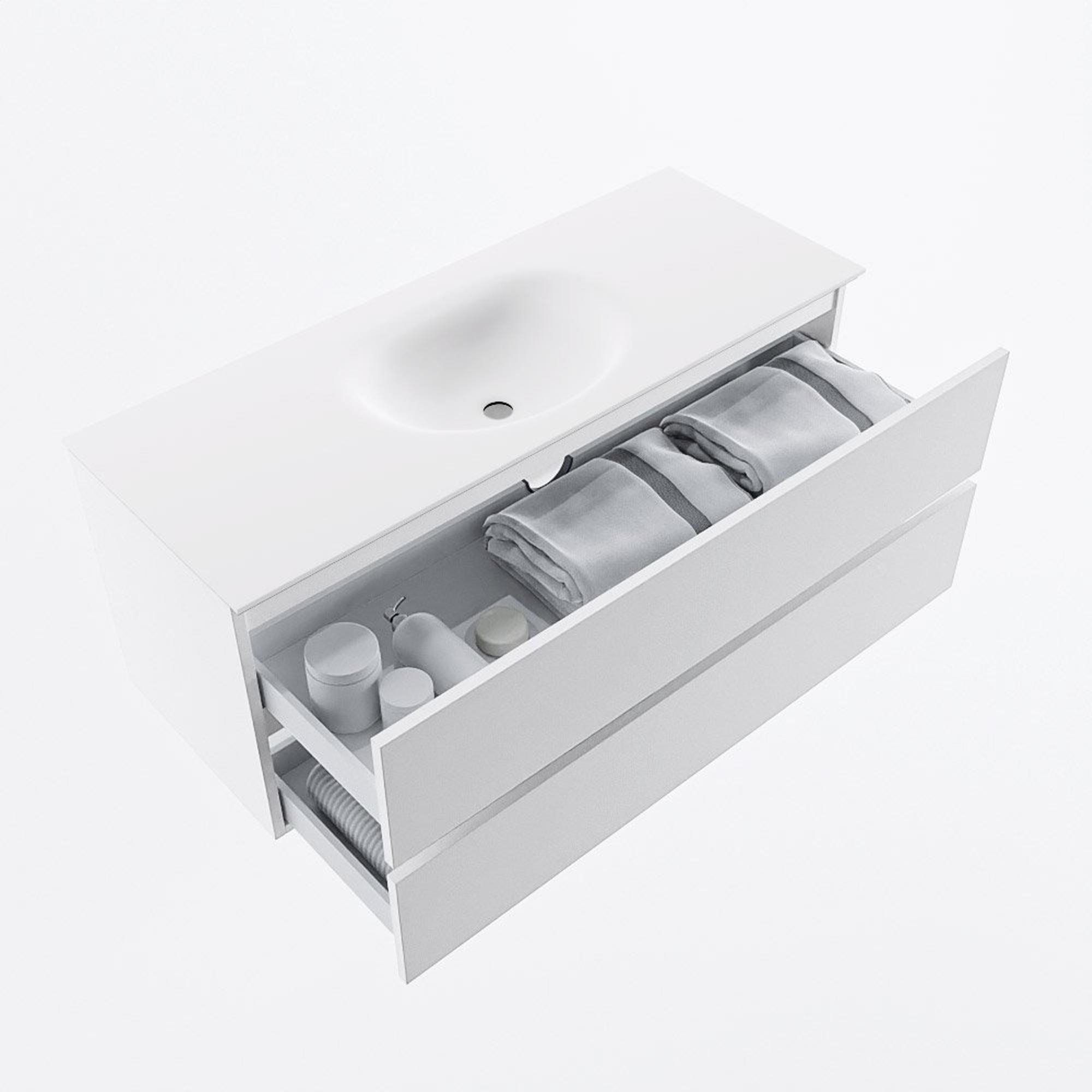 MONDIAZ VICA 120cm badmeubel onderkast Talc 2 lades. Wastafel MOON midden 1 kraangat, kleur Talc.