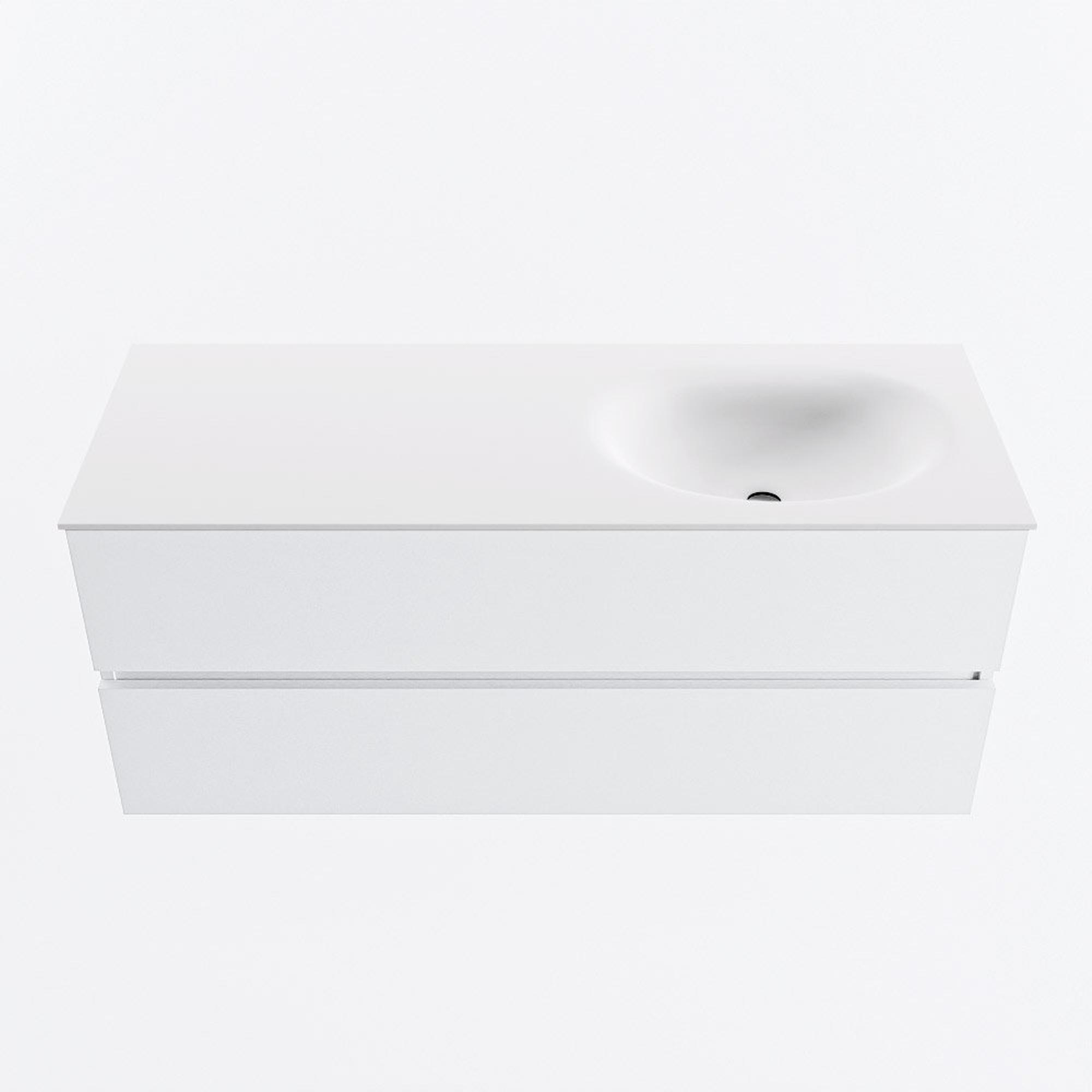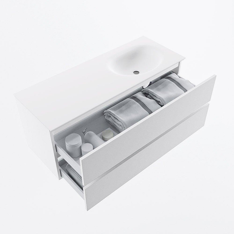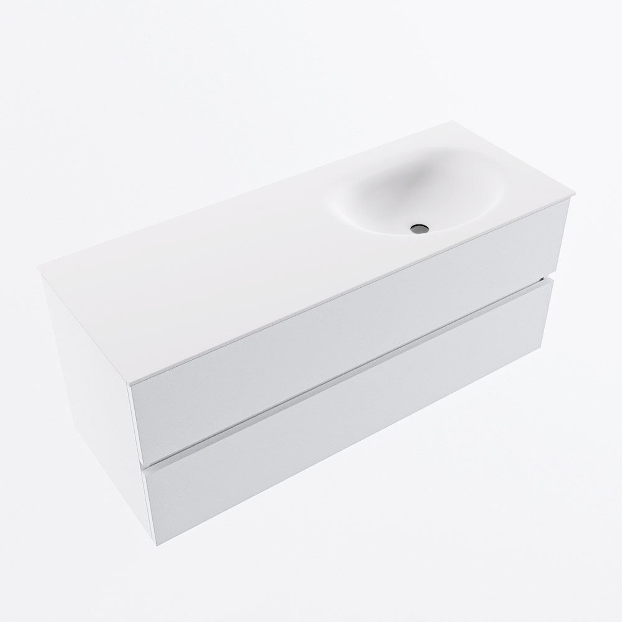 MONDIAZ VICA 120cm badmeubel onderkast Talc 2 lades. Wastafel MOON rechts 1 kraangat, kleur Talc.