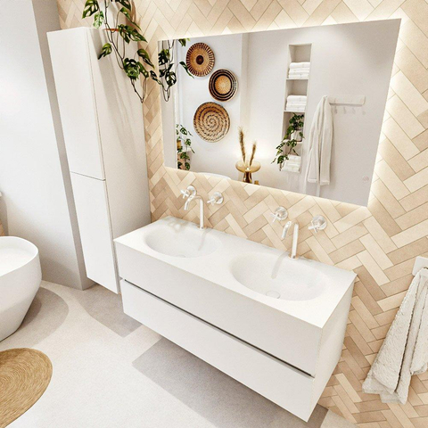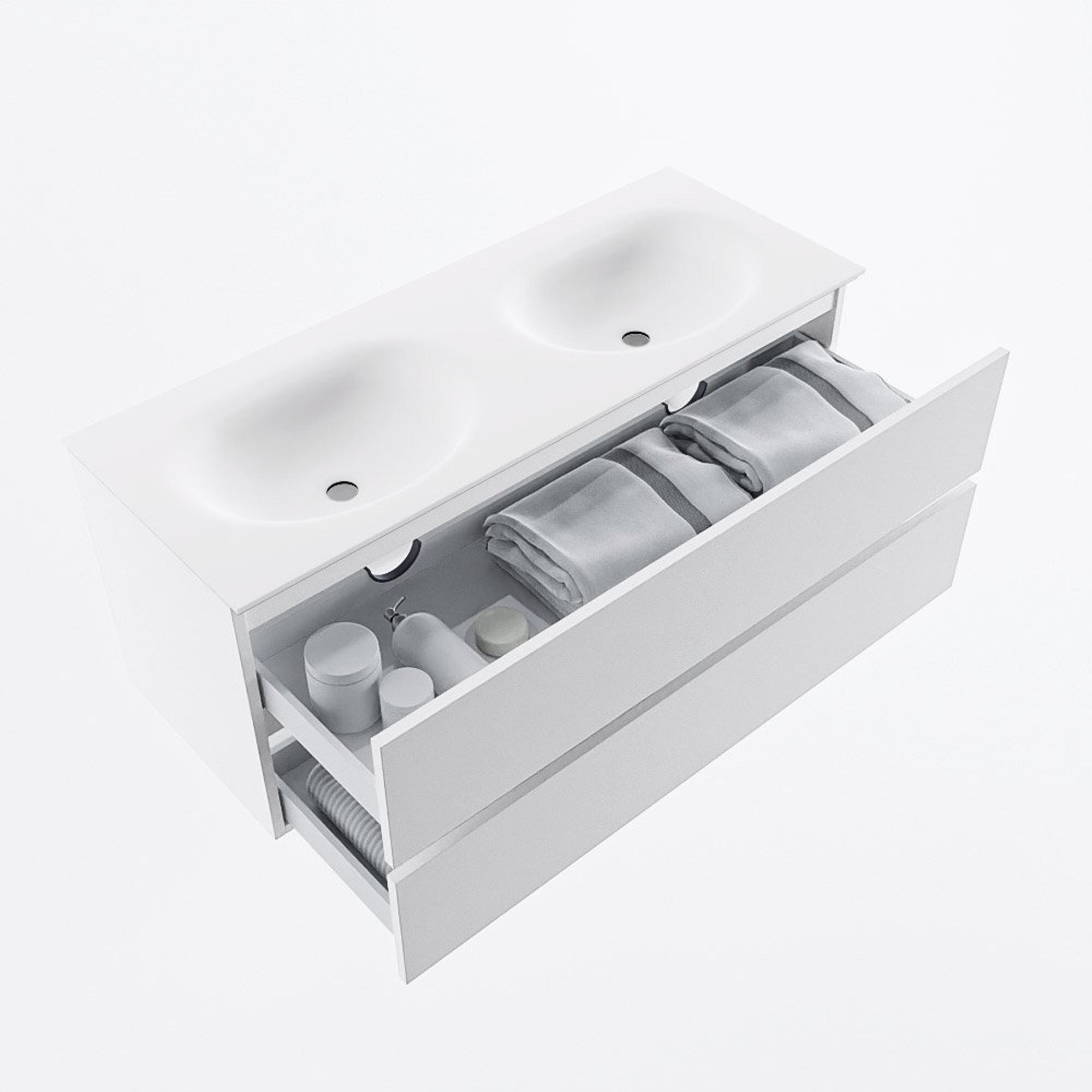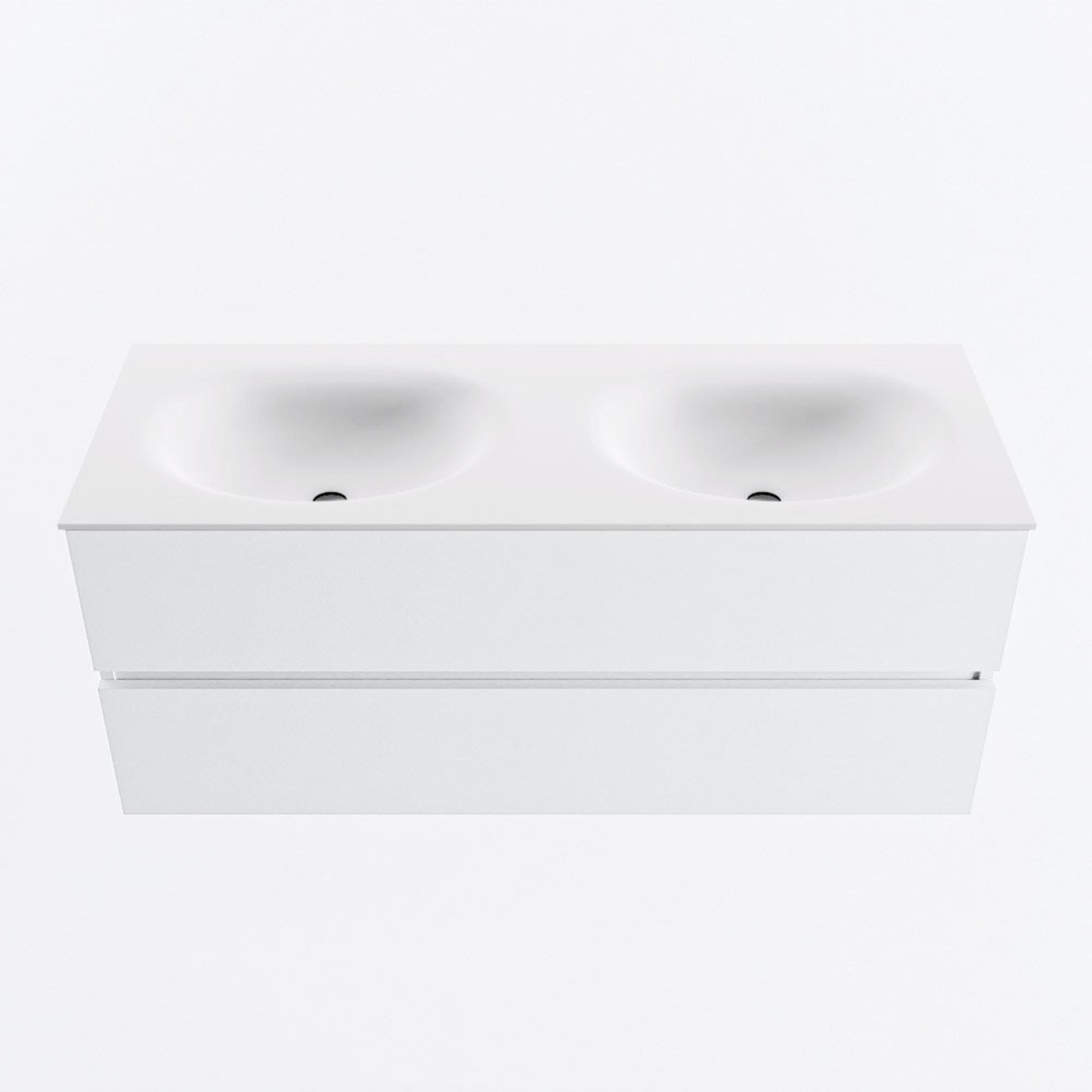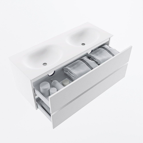 MONDIAZ VICA 120cm badmeubel onderkast Talc 2 lades. Wastafel MOON dubbel 2 kraangaten, kleur Talc.
