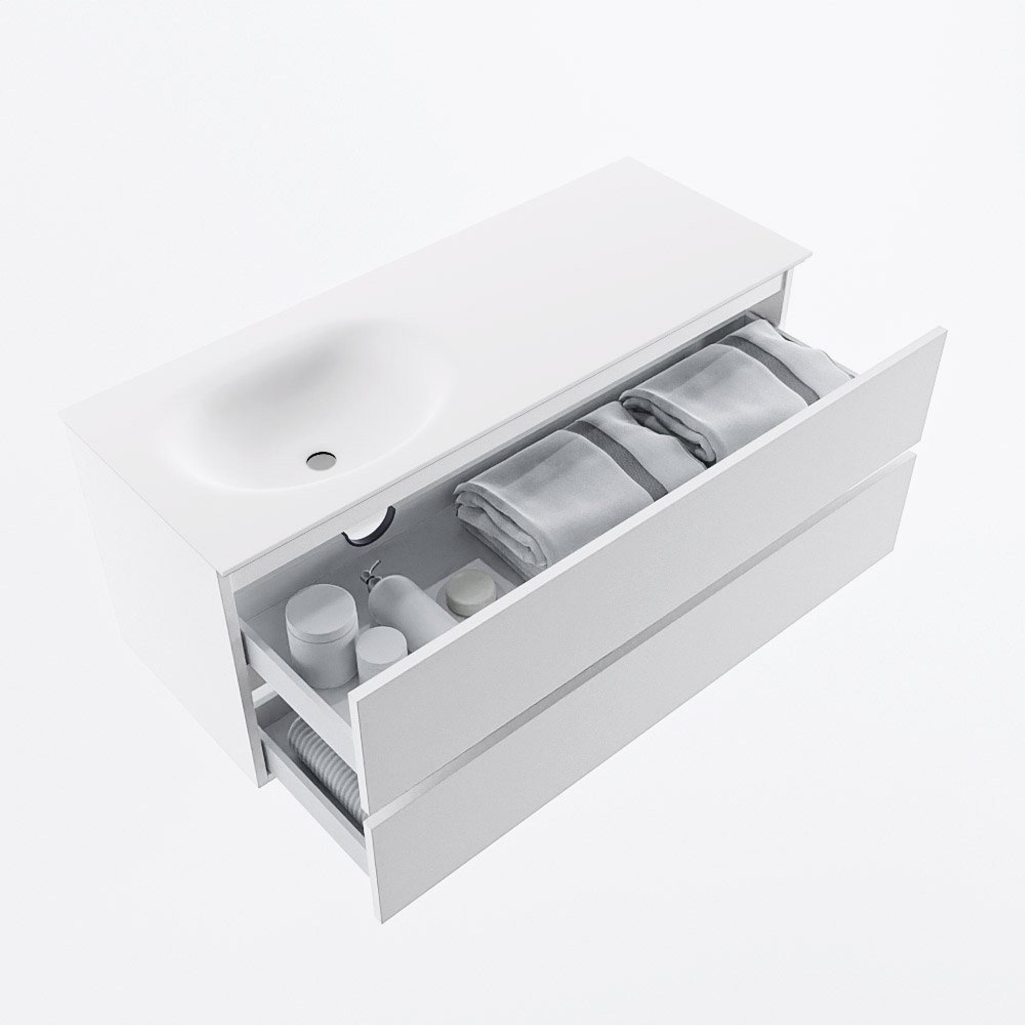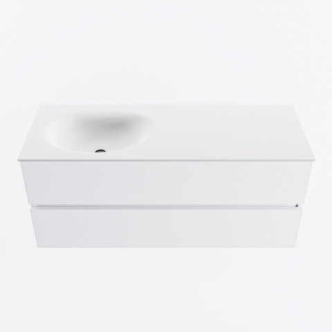 MONDIAZ VICA 120cm badmeubel onderkast Talc 2 lades. Wastafel MOON links zonder kraangat, kleur Talc.
