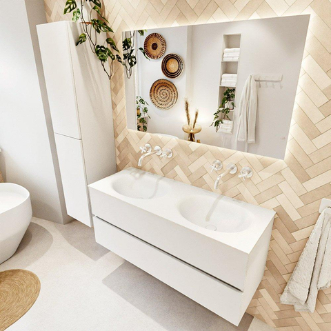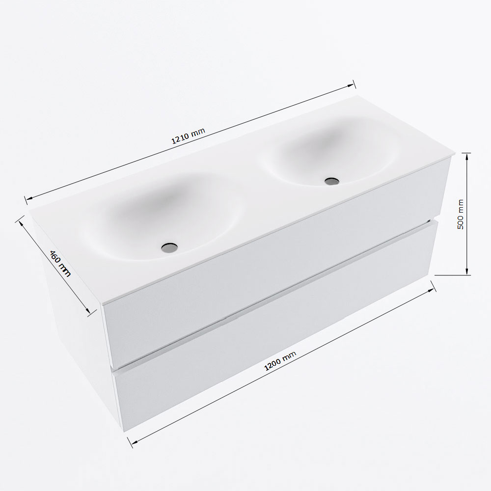 MONDIAZ VICA 120cm badmeubel onderkast Talc 2 lades. Wastafel MOON dubbel zonder kraangat, kleur Talc.