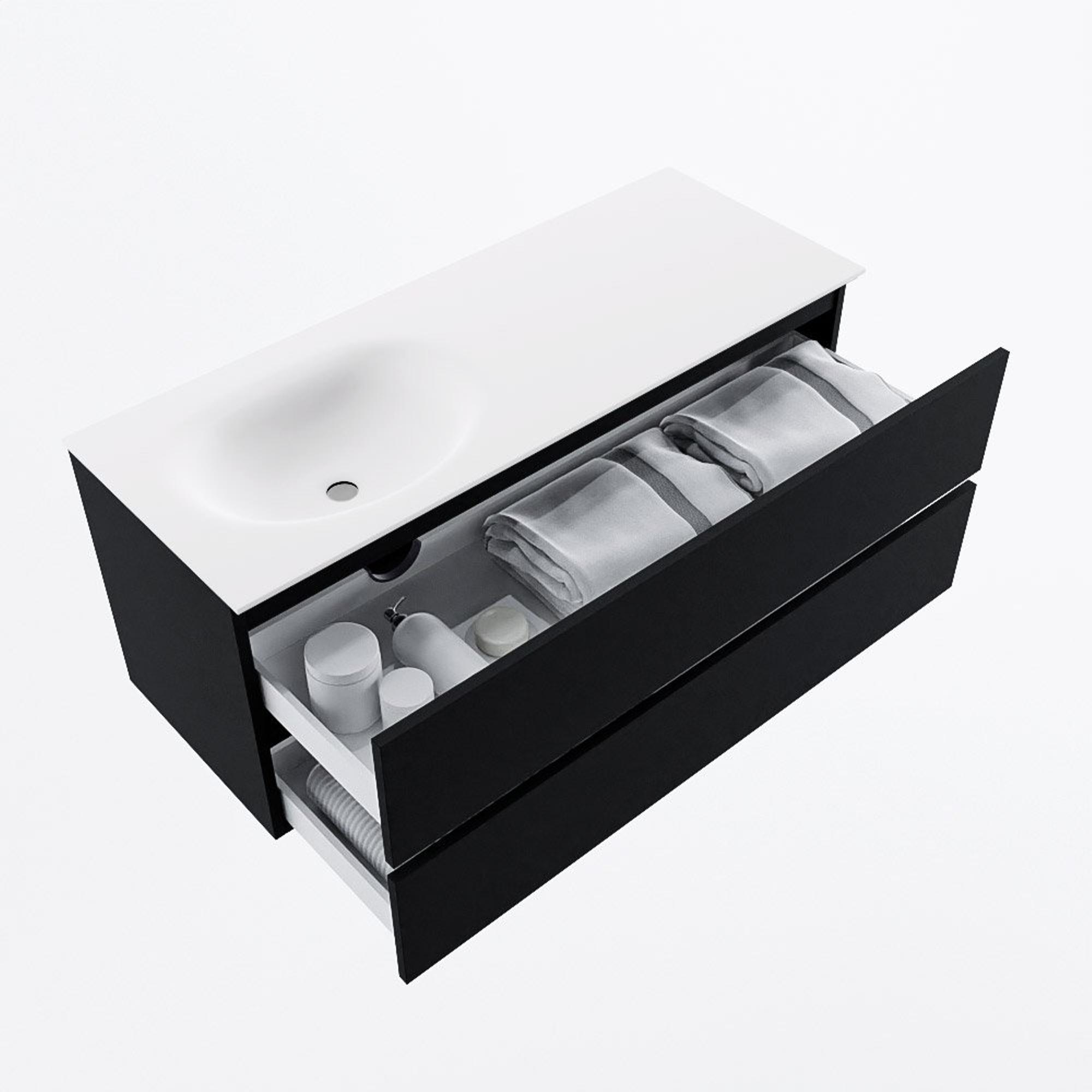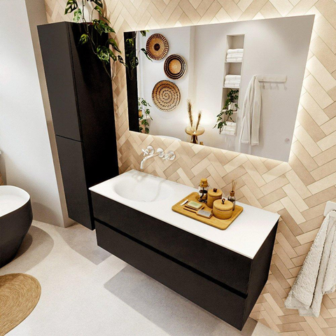 MONDIAZ VICA 120cm badmeubel onderkast Urban 2 lades. Wastafel MOON links zonder kraangat, kleur Talc.