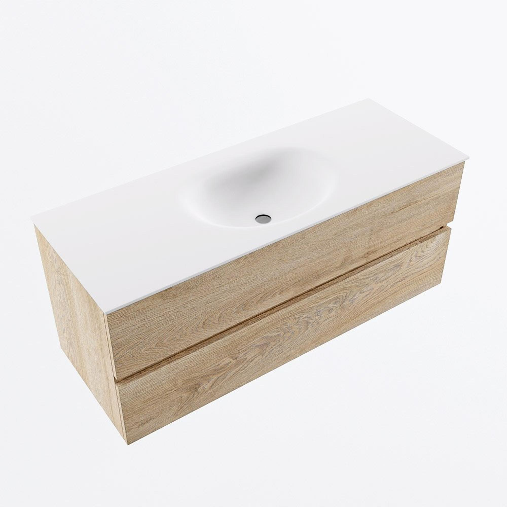 MONDIAZ VICA 120cm badmeubel onderkast Washed Oak 2 lades. Wastafel MOON midden 1 kraangat, kleur Talc.