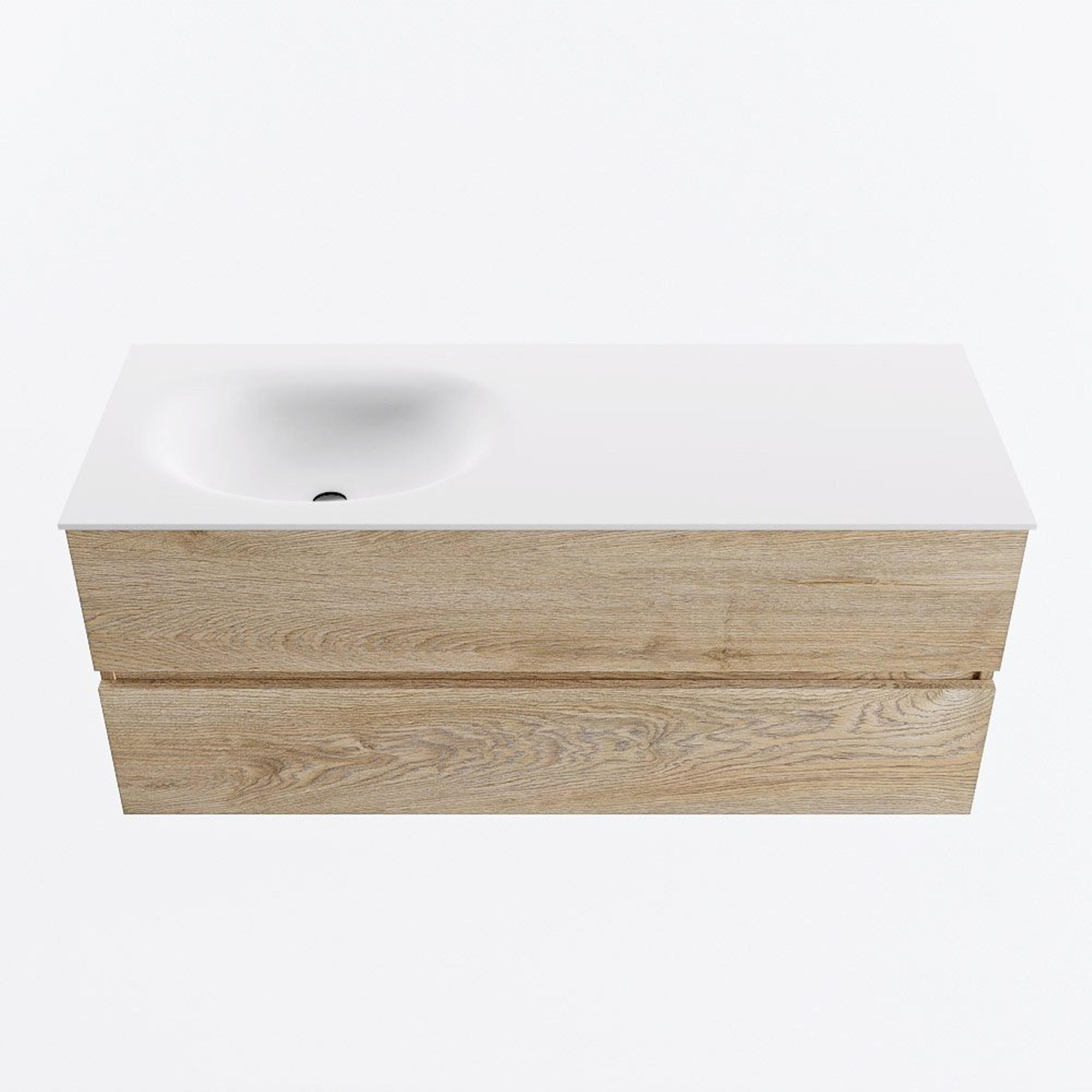 MONDIAZ VICA 120cm badmeubel onderkast Washed Oak 2 lades. Wastafel MOON links 1 kraangat, kleur Talc.