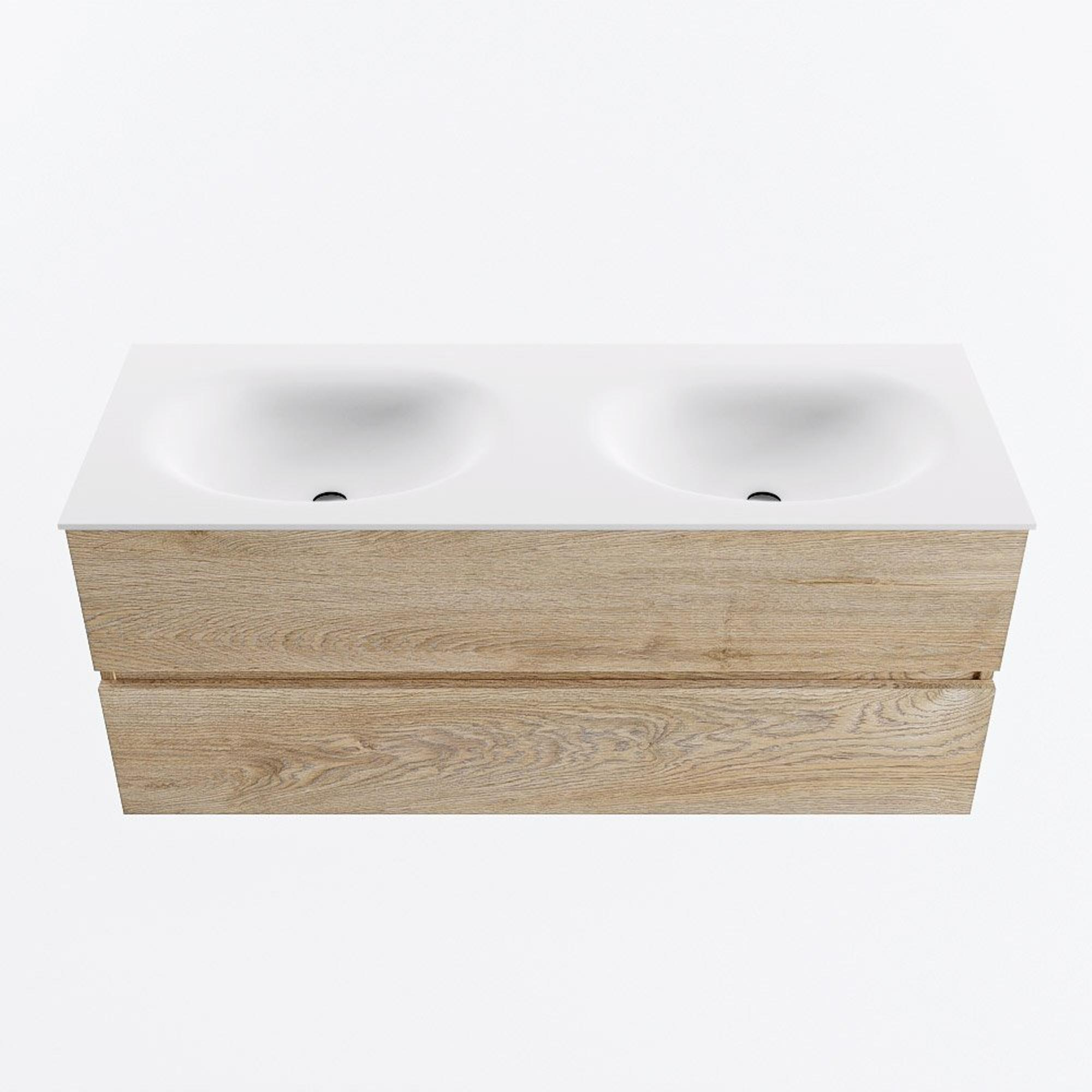 MONDIAZ VICA 120cm badmeubel onderkast Washed Oak 2 lades. Wastafel MOON dubbel 2 kraangaten, kleur Talc.