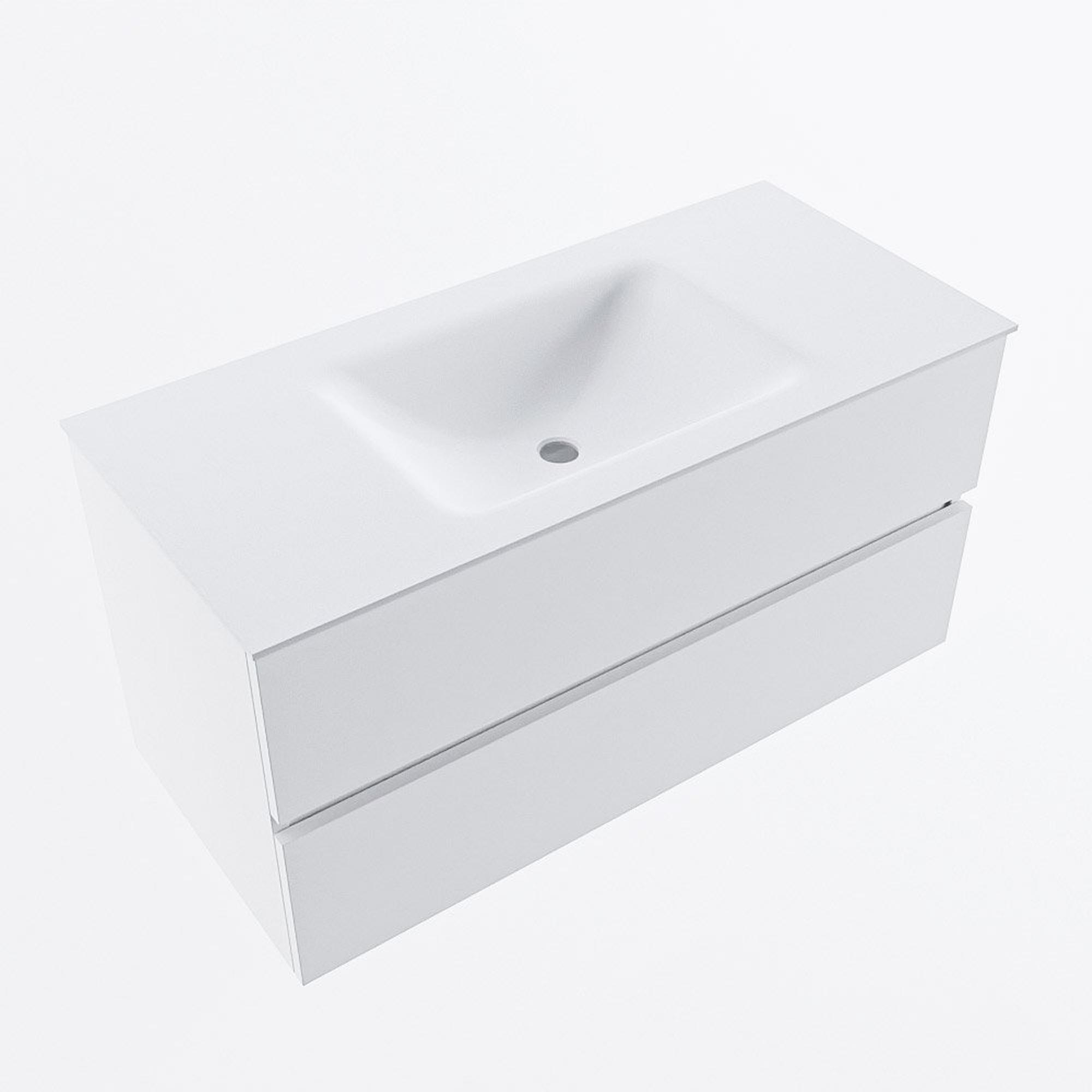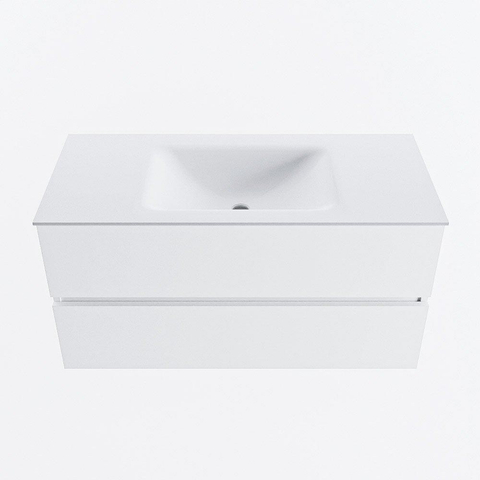 MONDIAZ VICA 100cm badmeubel onderkast Talc 2 lades. Wastafel CLOUD midden 1 kraangat, kleur Talc.