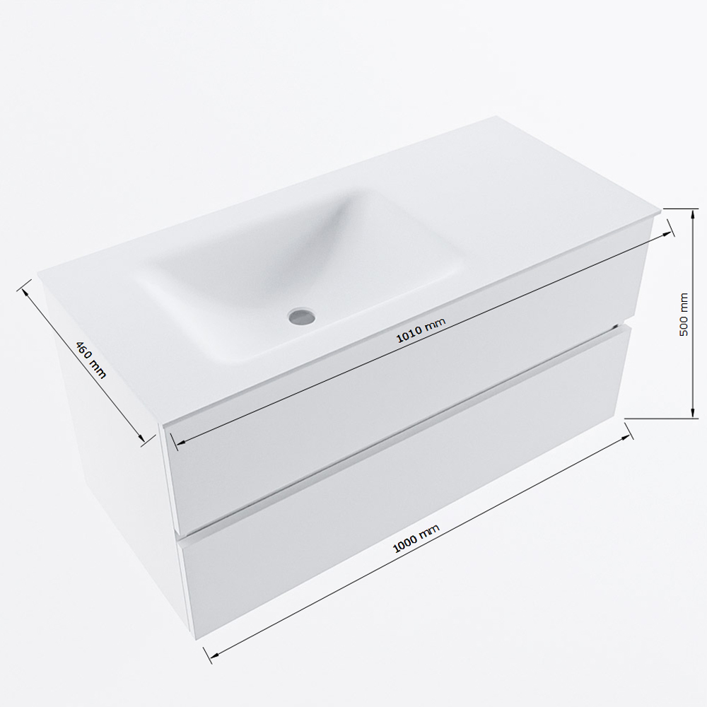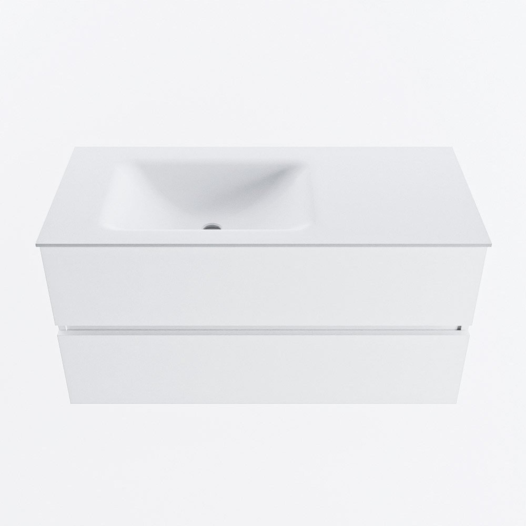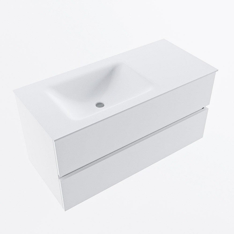 MONDIAZ VICA 100cm badmeubel onderkast Talc 2 lades. Wastafel CLOUD links 1 kraangat, kleur Talc.
