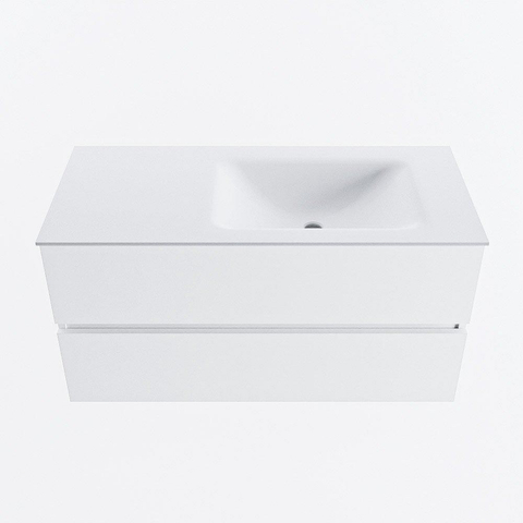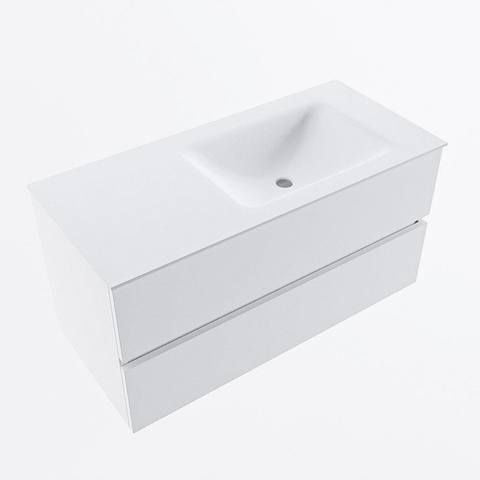 MONDIAZ VICA 100cm badmeubel onderkast Talc 2 lades. Wastafel CLOUD rechts 1 kraangat, kleur Talc.