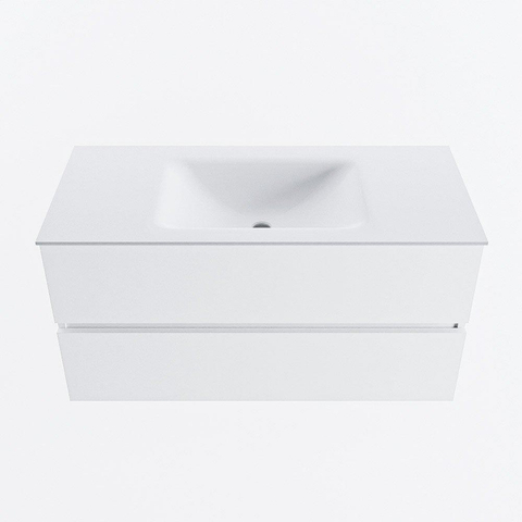 MONDIAZ VICA 100cm badmeubel onderkast Talc 2 lades. Wastafel CLOUD midden zonder kraangat, kleur Talc.